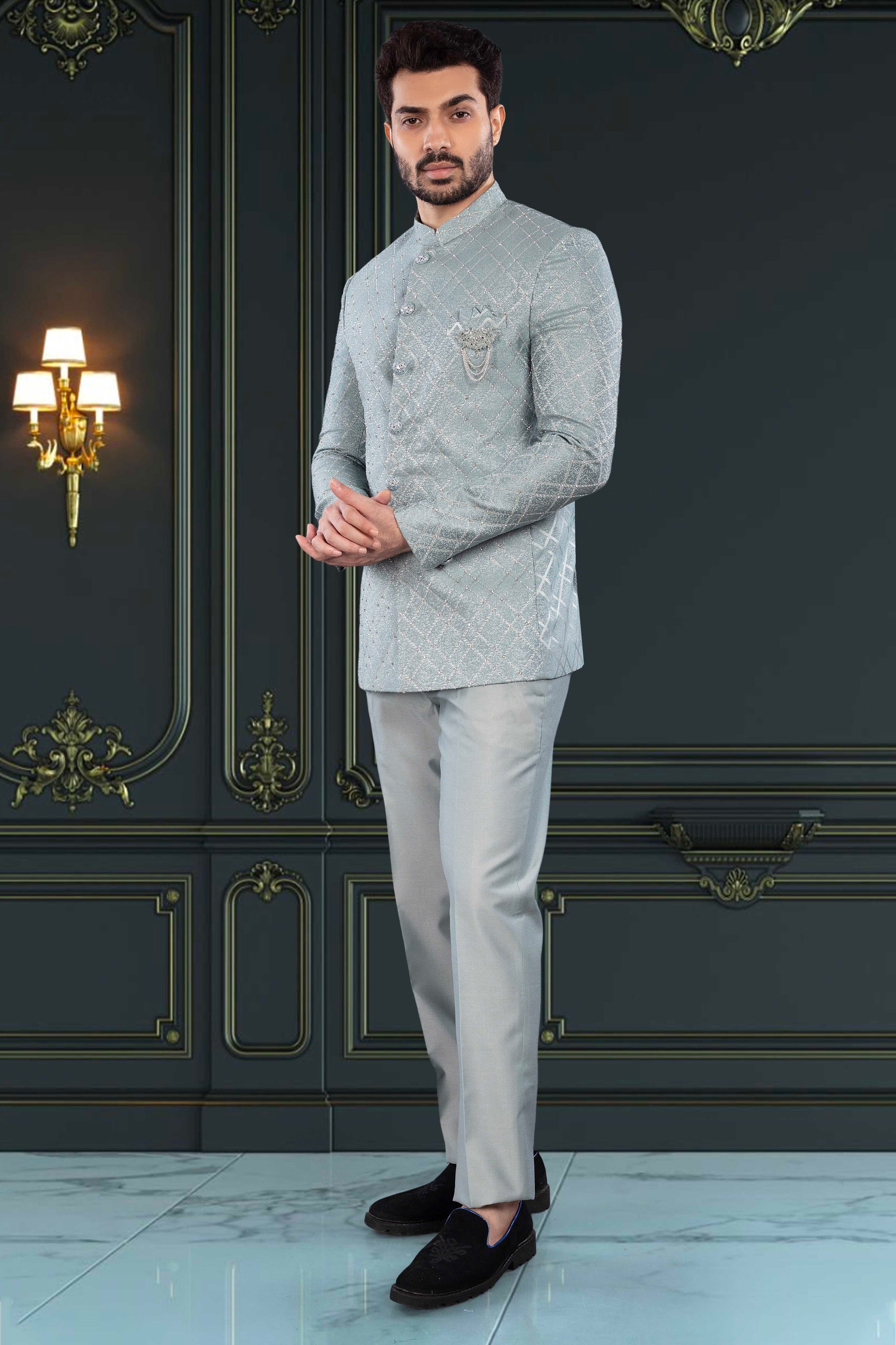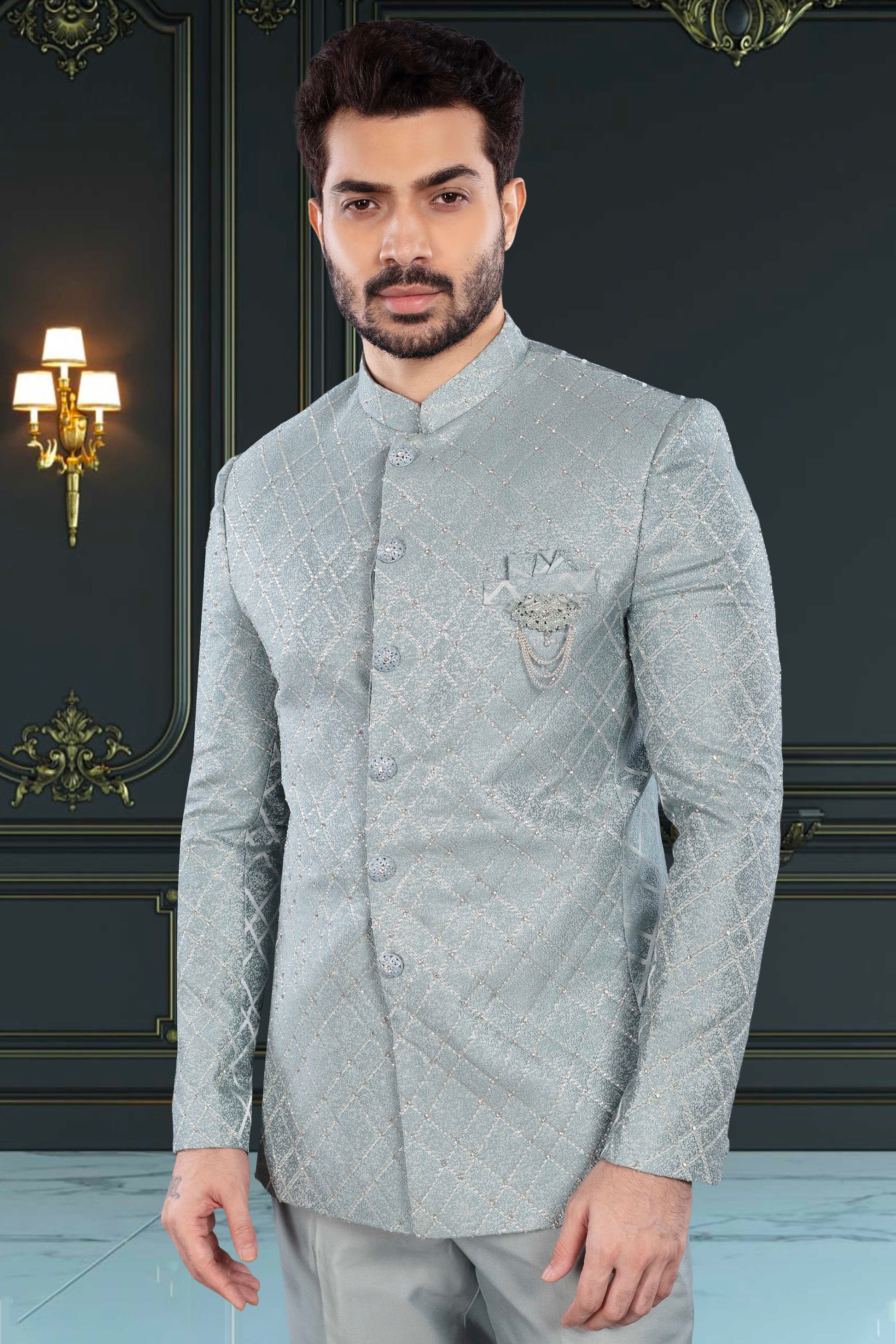 Introducing our Men's Bandhgala M42-S113, designed with cutdana and stone work for a touch of elegance and personality. Stand out with this unique and stylish piece, perfect for any special occasion. (Formal wear just got a whole lot cooler!)