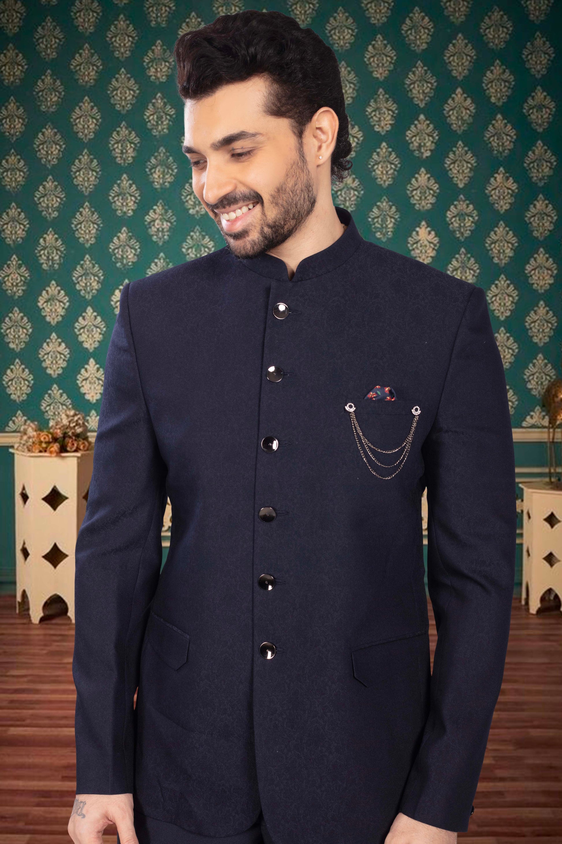 Indulge in the refined elegance of our Mens Bandhgala U2-S332. Crafted from luxurious brocade fabric, this Bandhgala exudes sophistication and is perfect for any reception or special event. Elevate your style and leave a lasting impression as a distinguished guest.