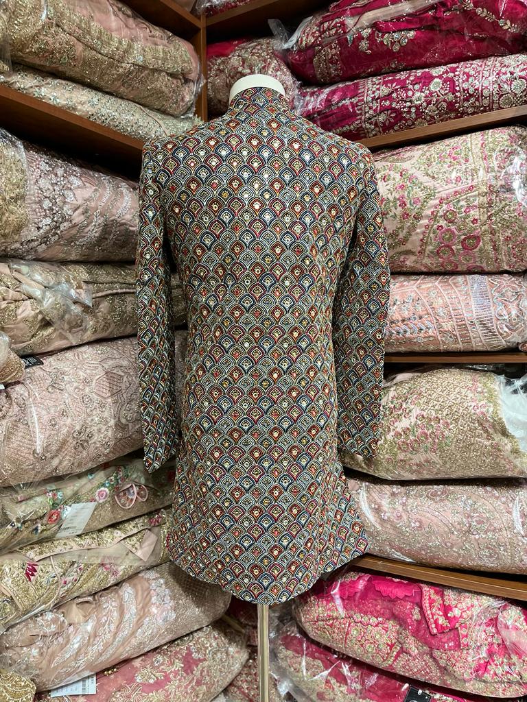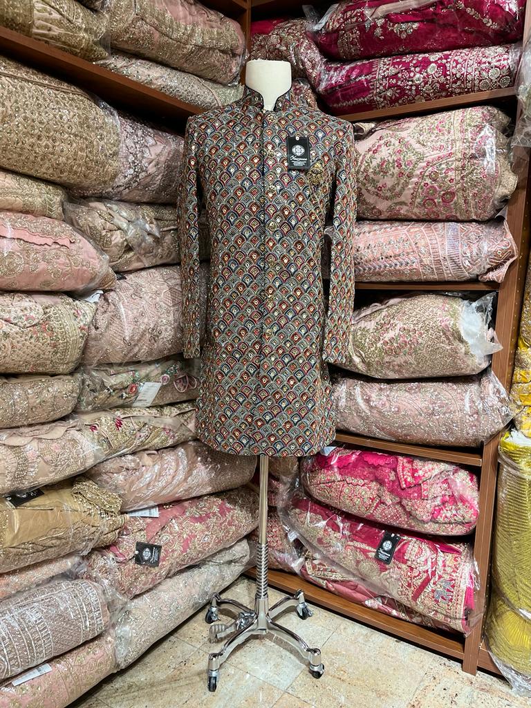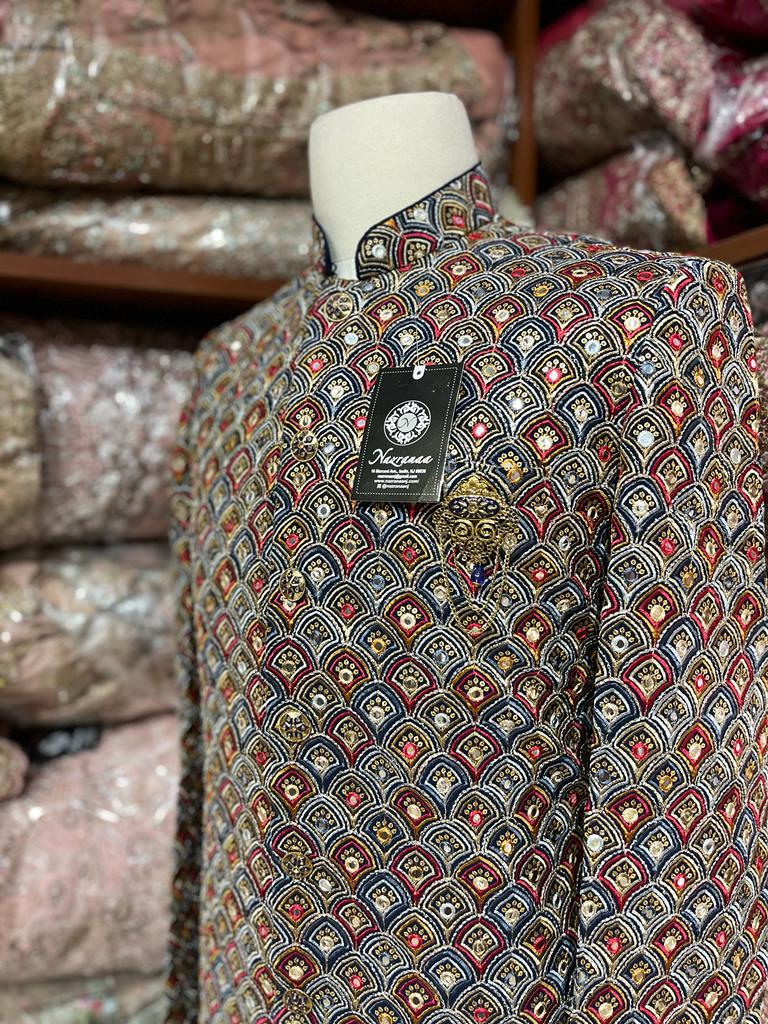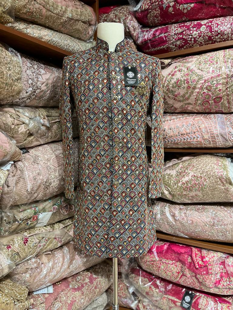 • Banarsi Brocade Indo Western with contrasting gold pants.