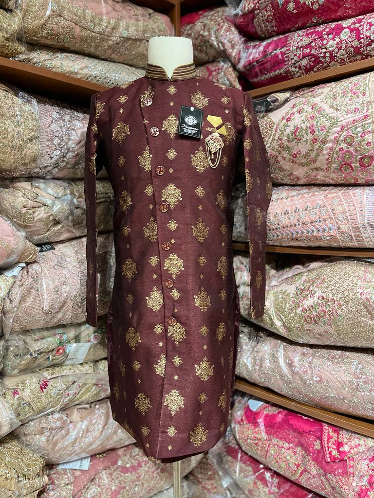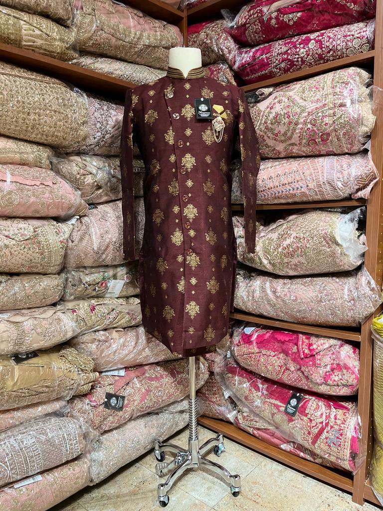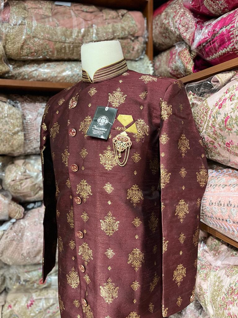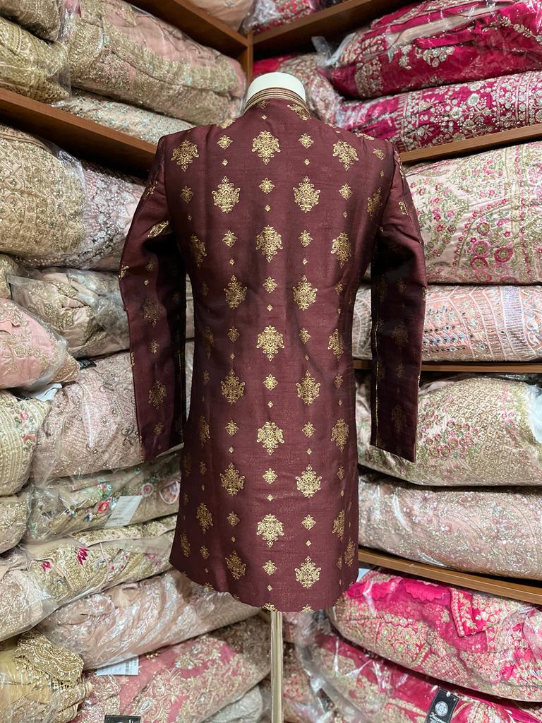 • Banarsi Brocade Indo Western with contrasting gold pants.
