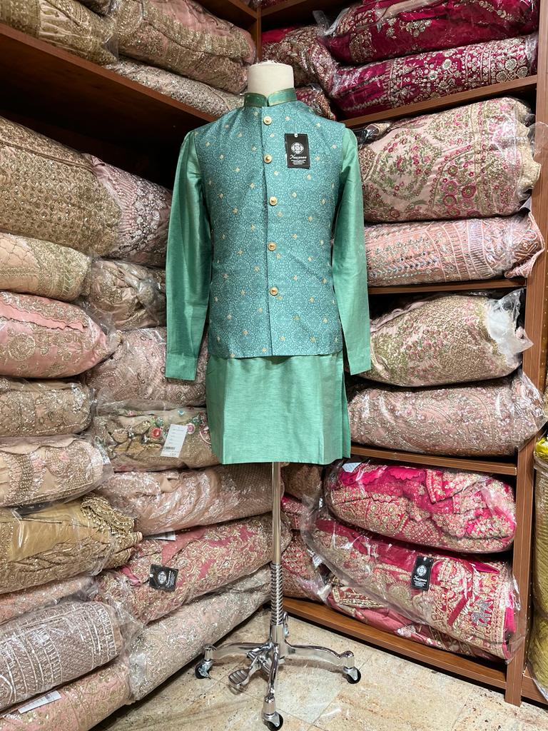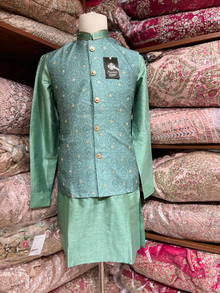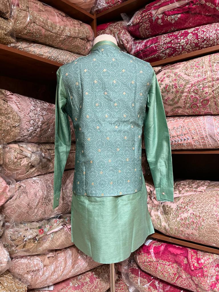 • Cotton Linen blended kurta with ivory thread embroidered vest plus ivory churidar.