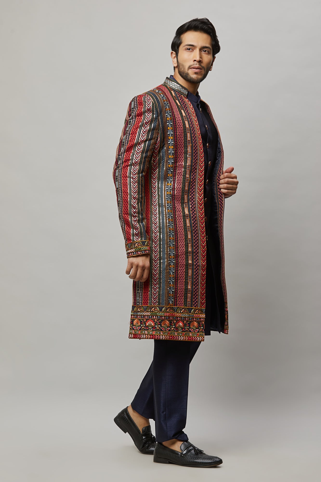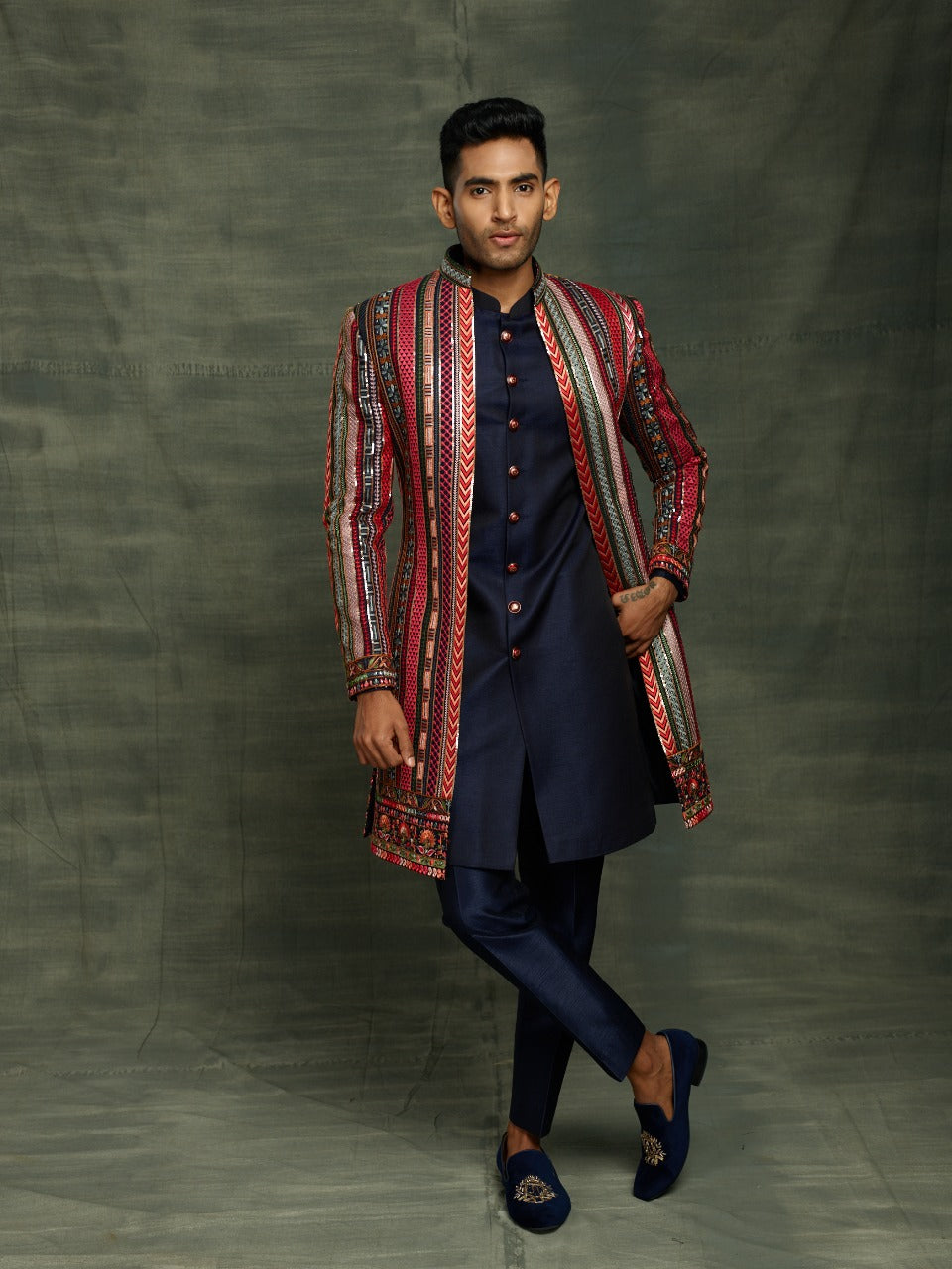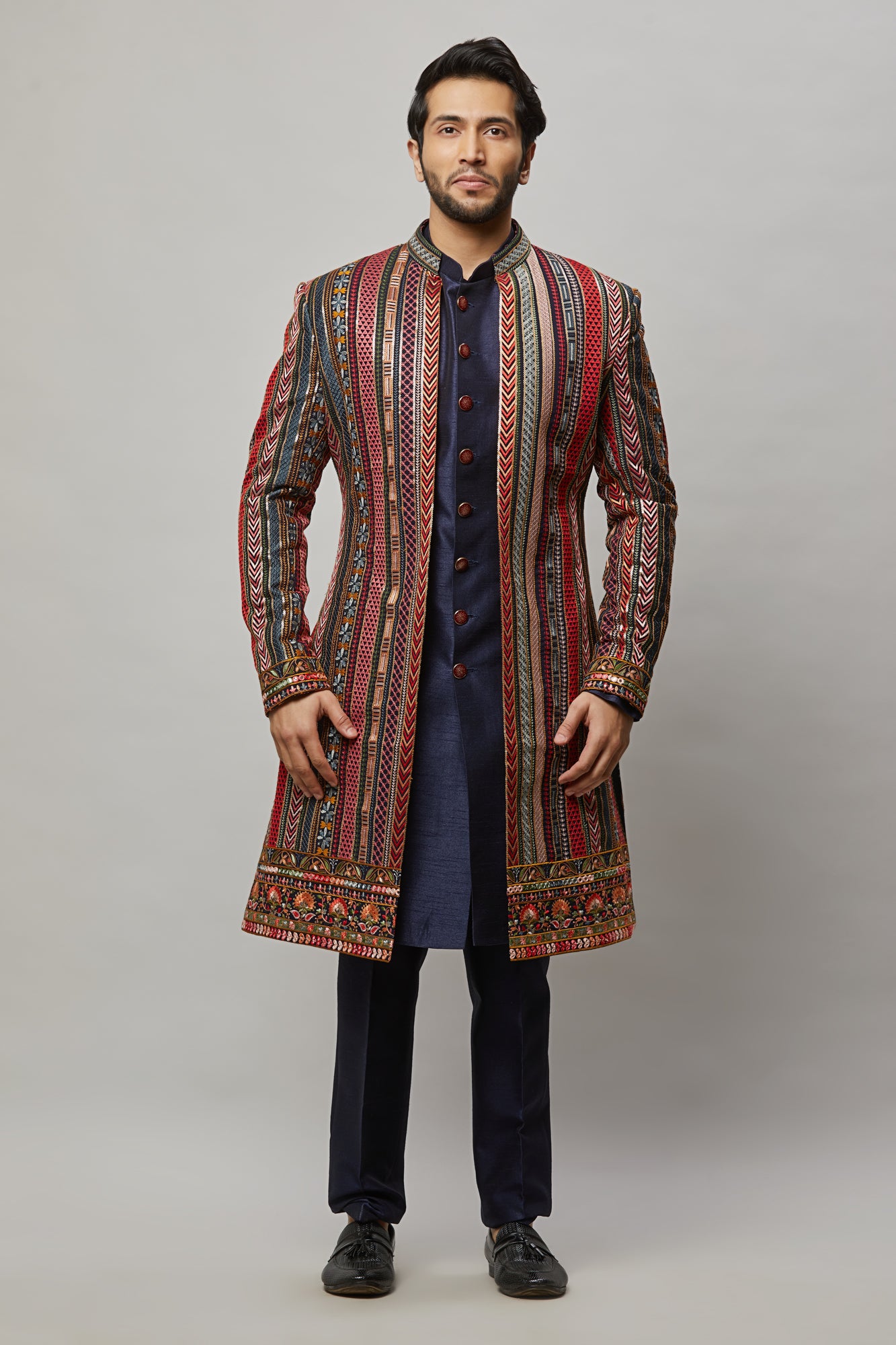 Mens Multi-Color Open Jacket Sherwani SWD7