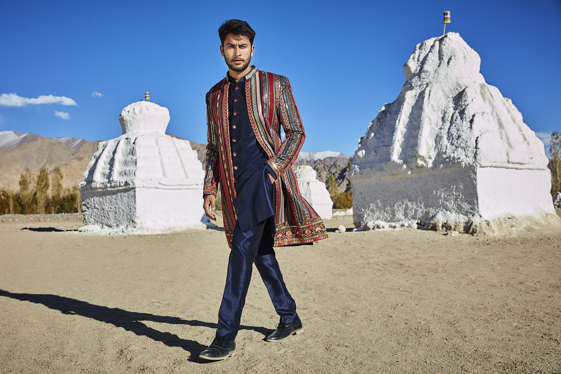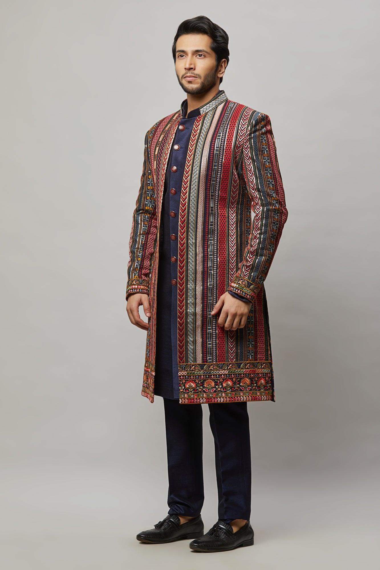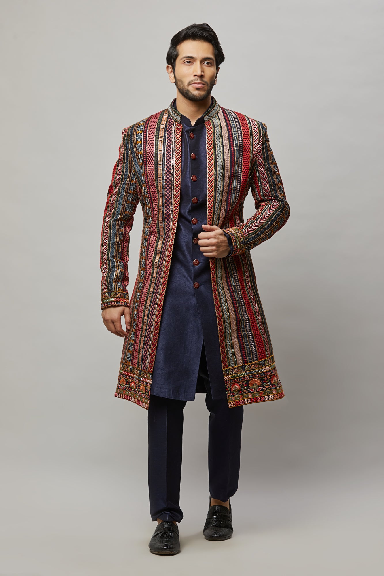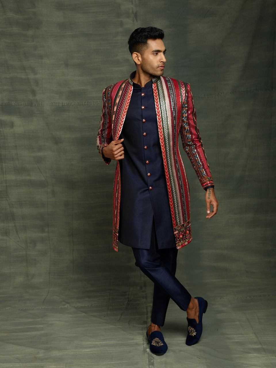 Mens Multi-Color Open Jacket Sherwani SWD7