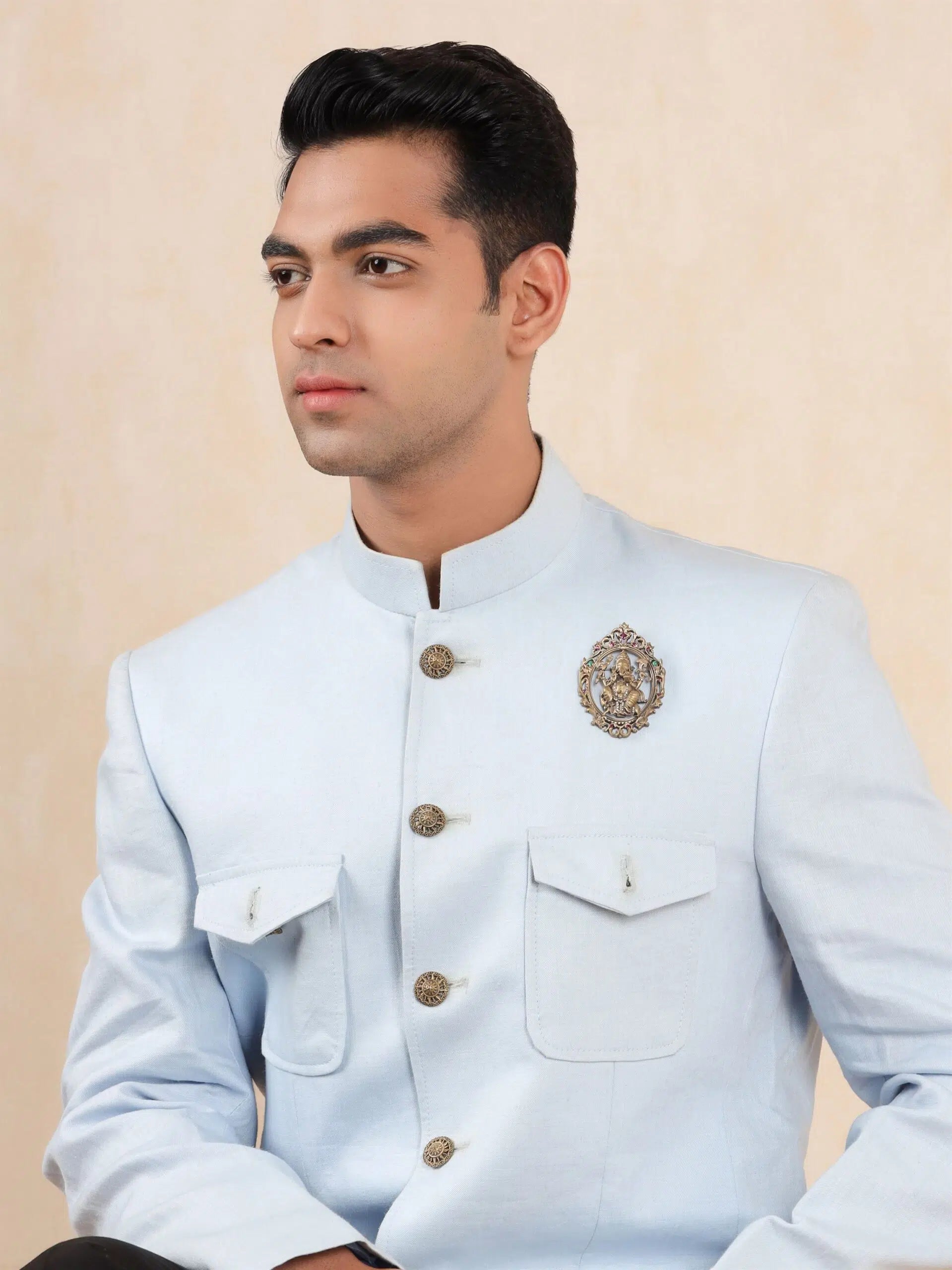 Introducing our Men's Broach-01 featuring a stunning Lord Ganesh Broach. The perfect accessory to complete your formal or casual look. Versatile and easy to wear, this broach can be effortlessly pinned to your Bandhgala, Sherwani, Kurta, or coat for a touch of sophistication.