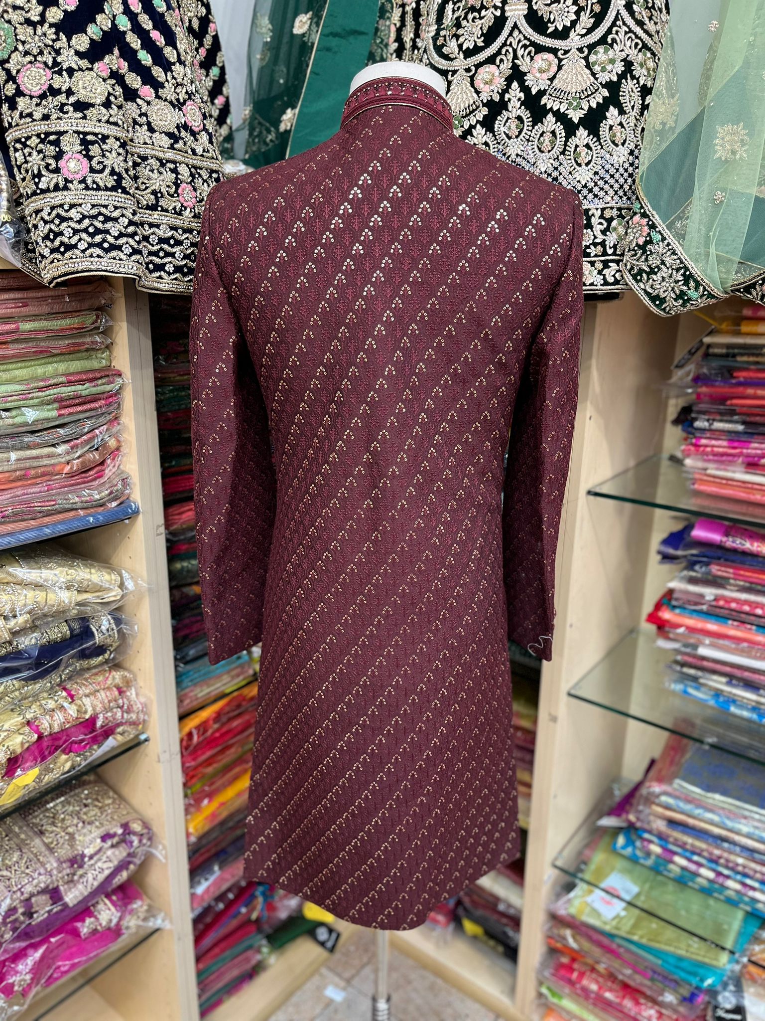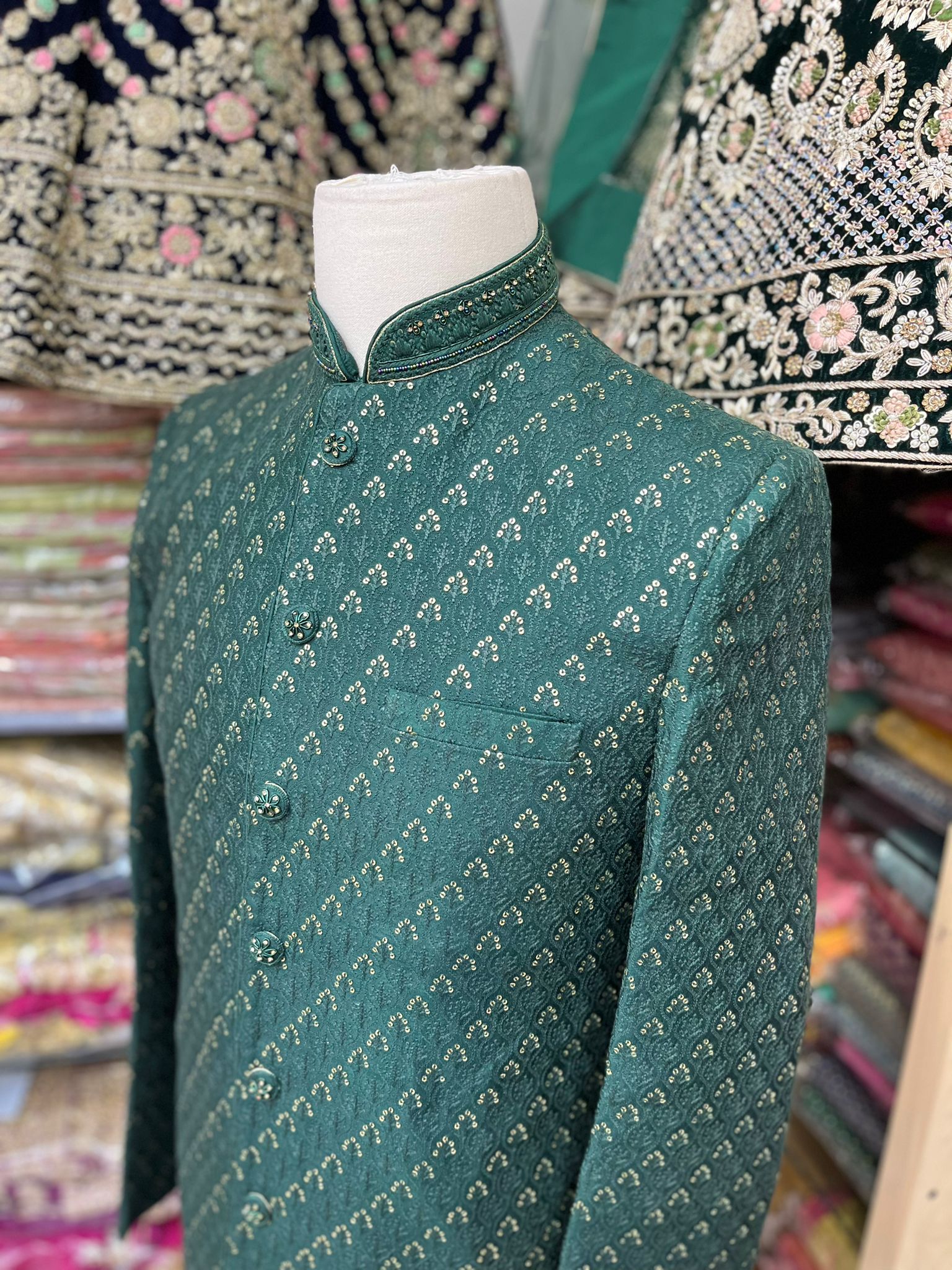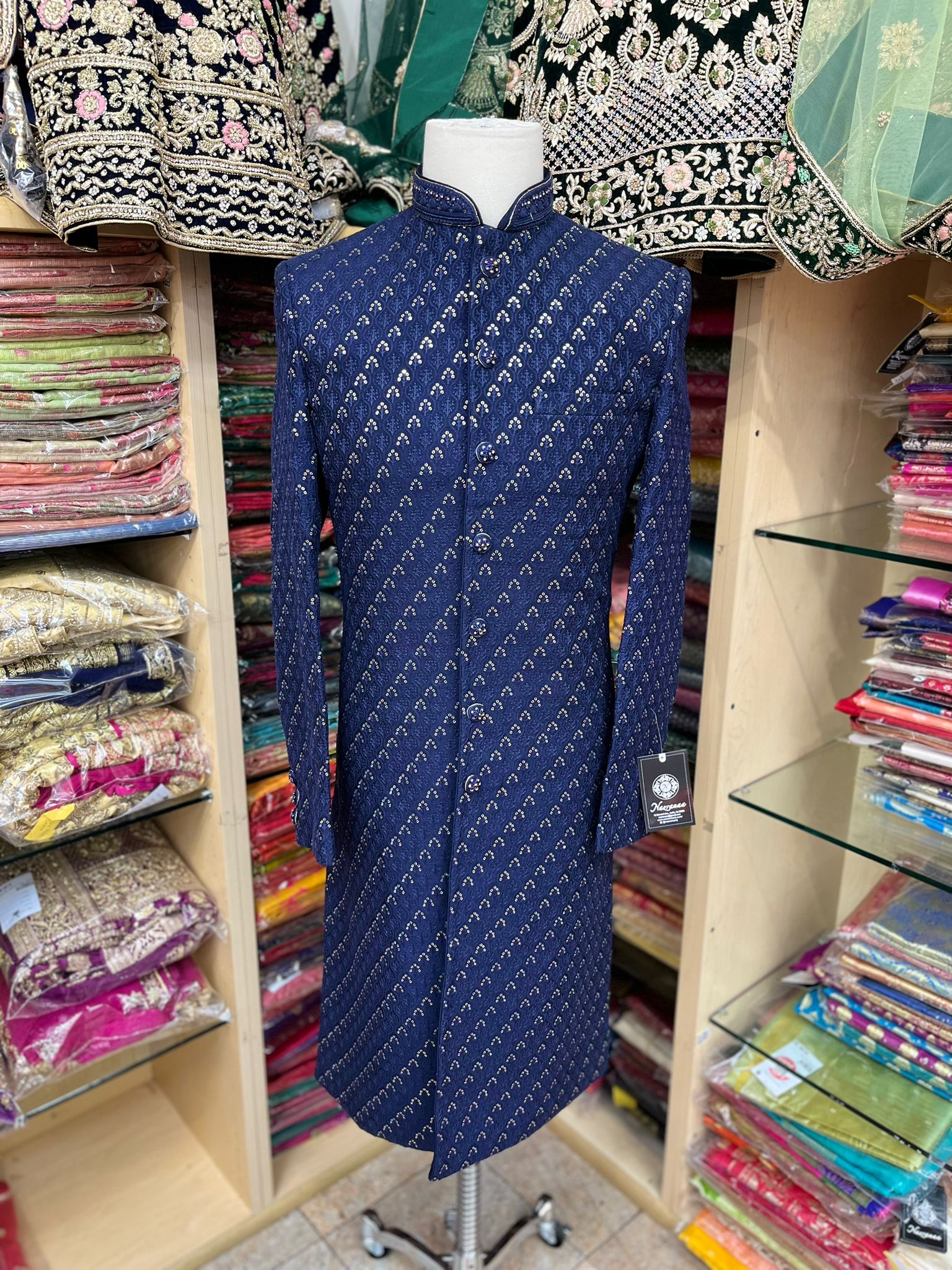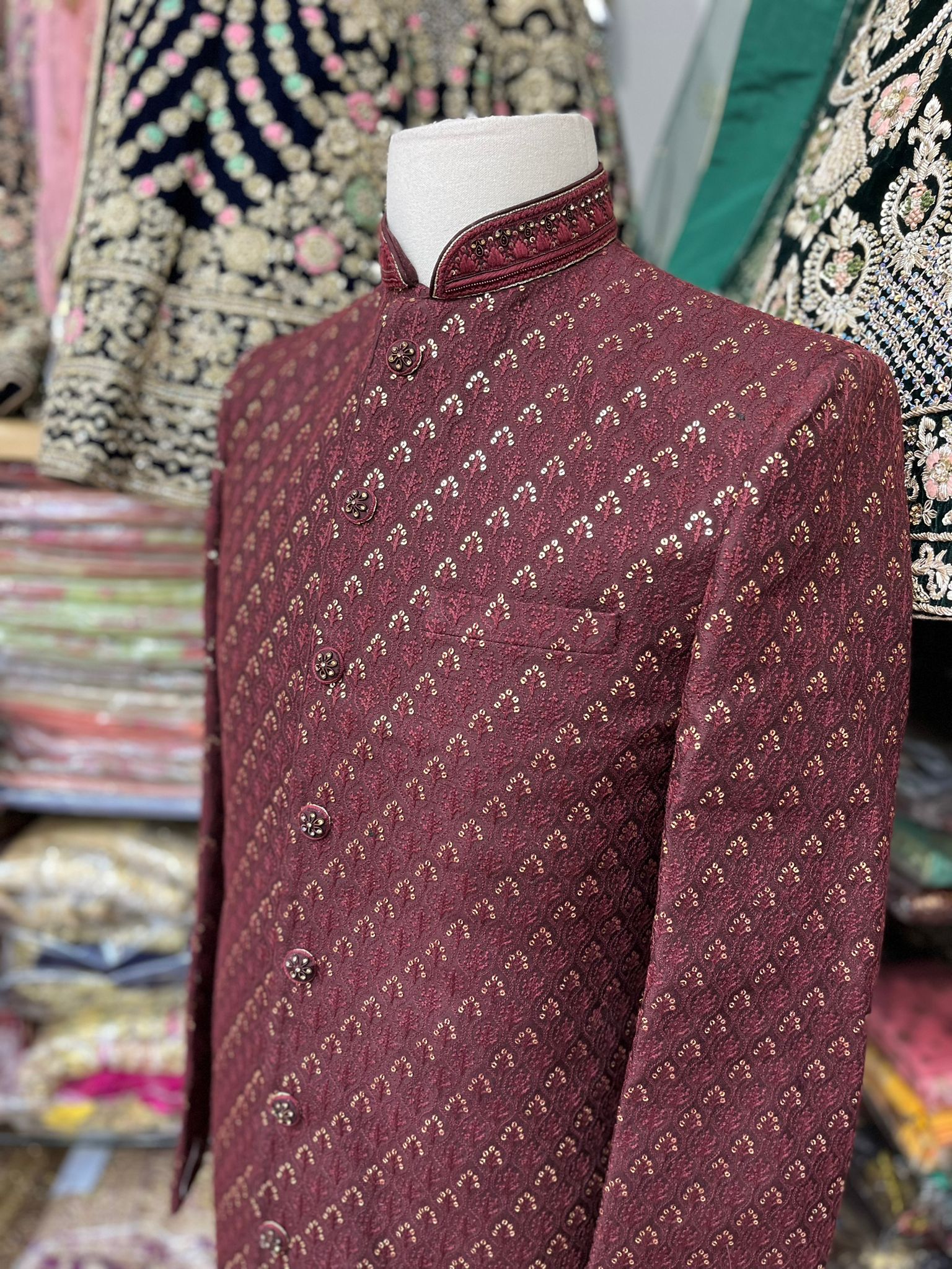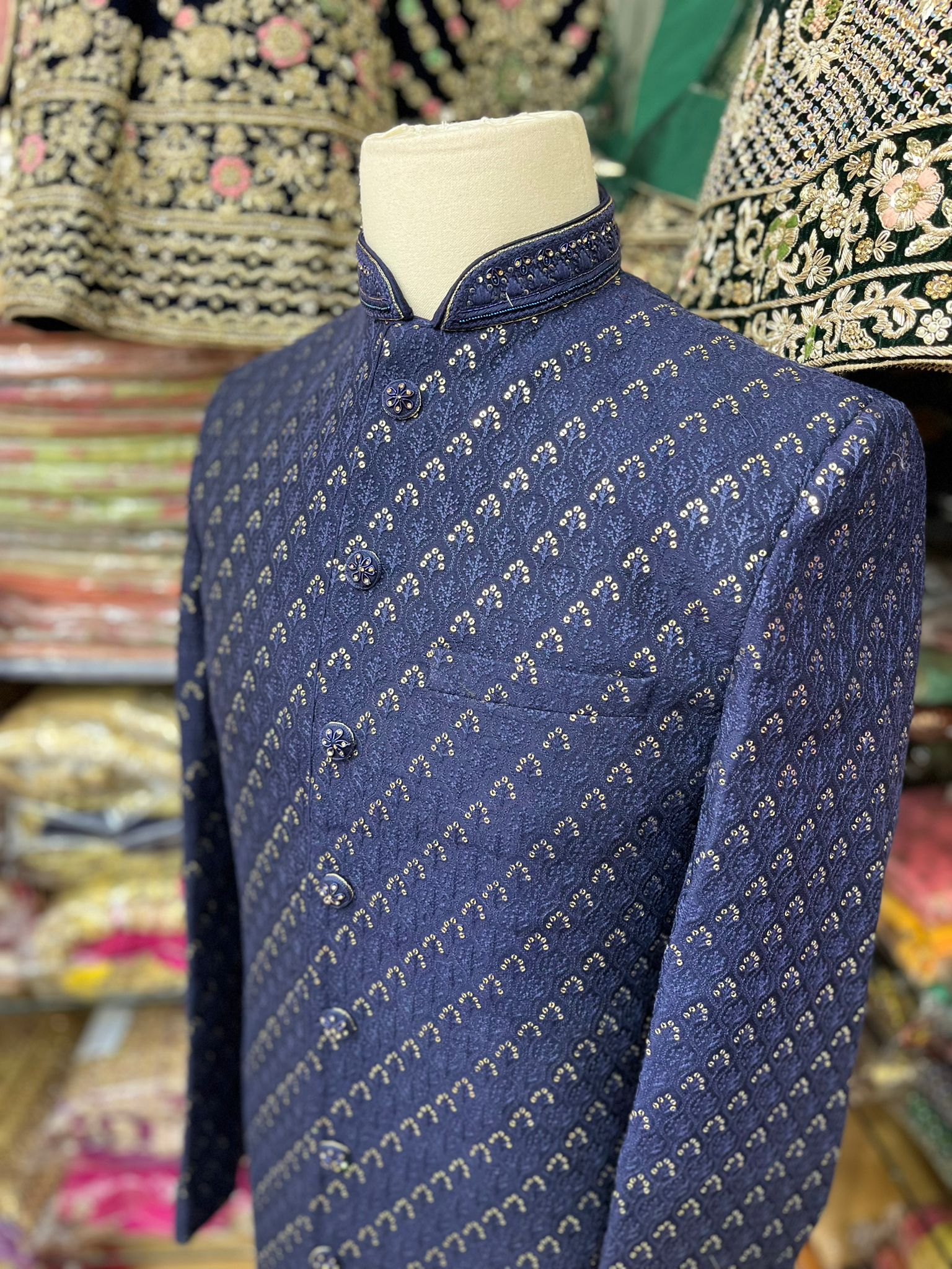 • "Discover our exquisite collection of simple Sherwanis in Navy Blue, Maroon, and Bottle Green with intricate thread work and sequin. Perfect for weddings and special occasions, these Sherwanis are made from high-quality materials and exude traditional elegance. Shop now and add a touch of sophistication to your wardrobe.