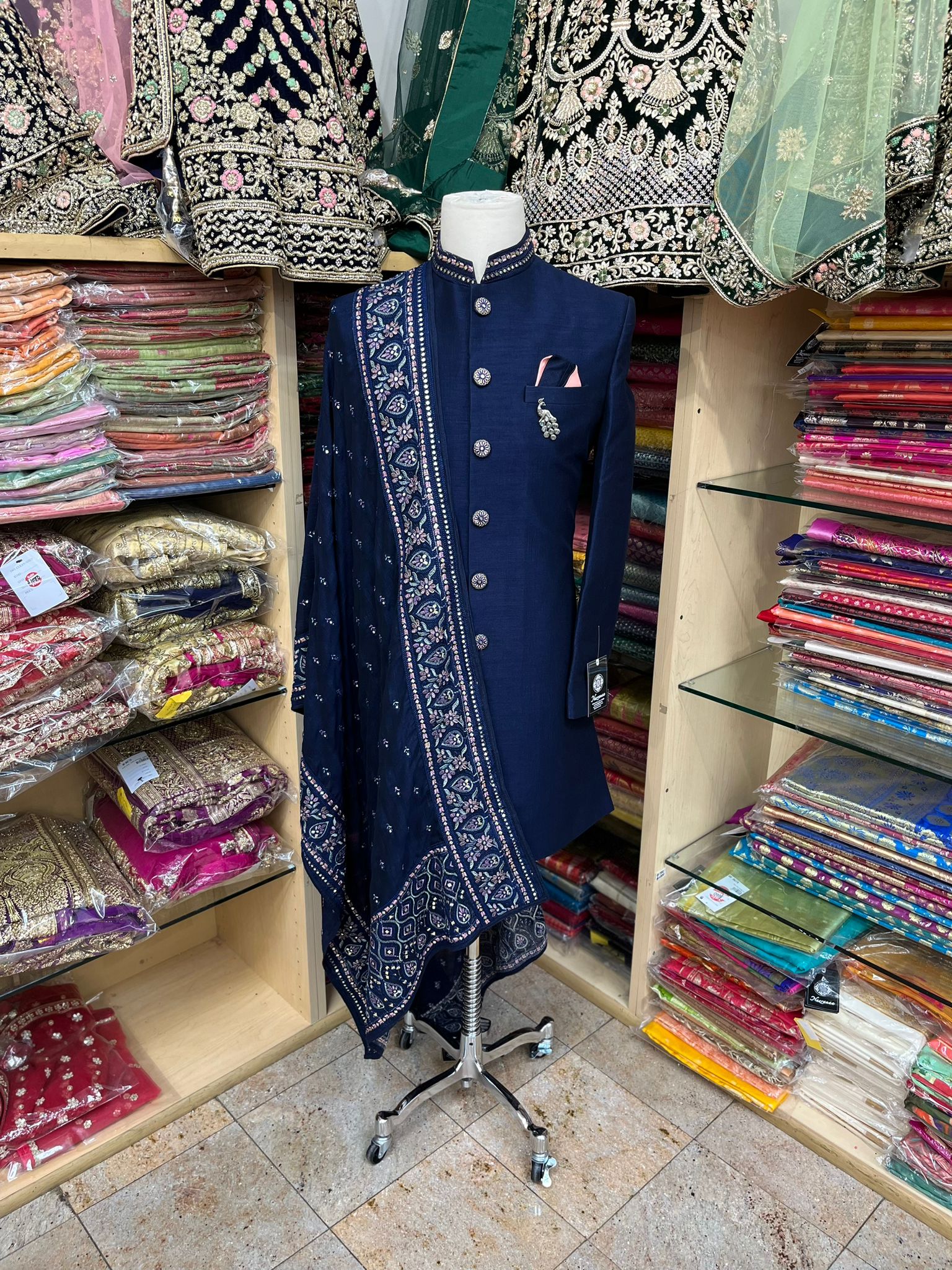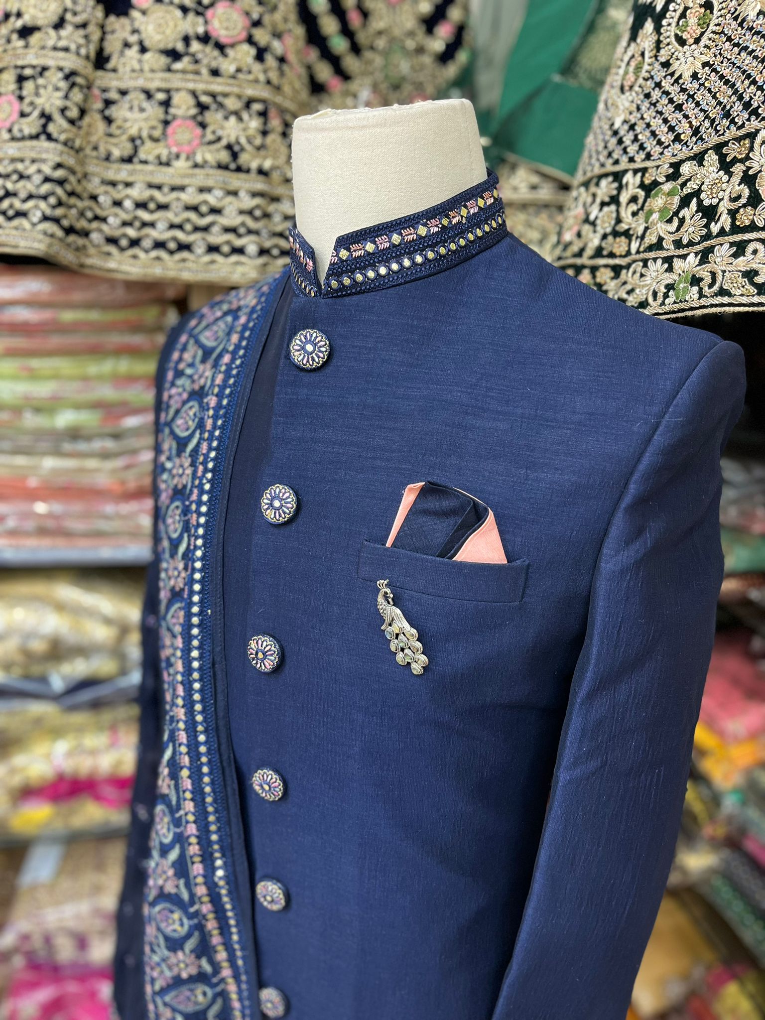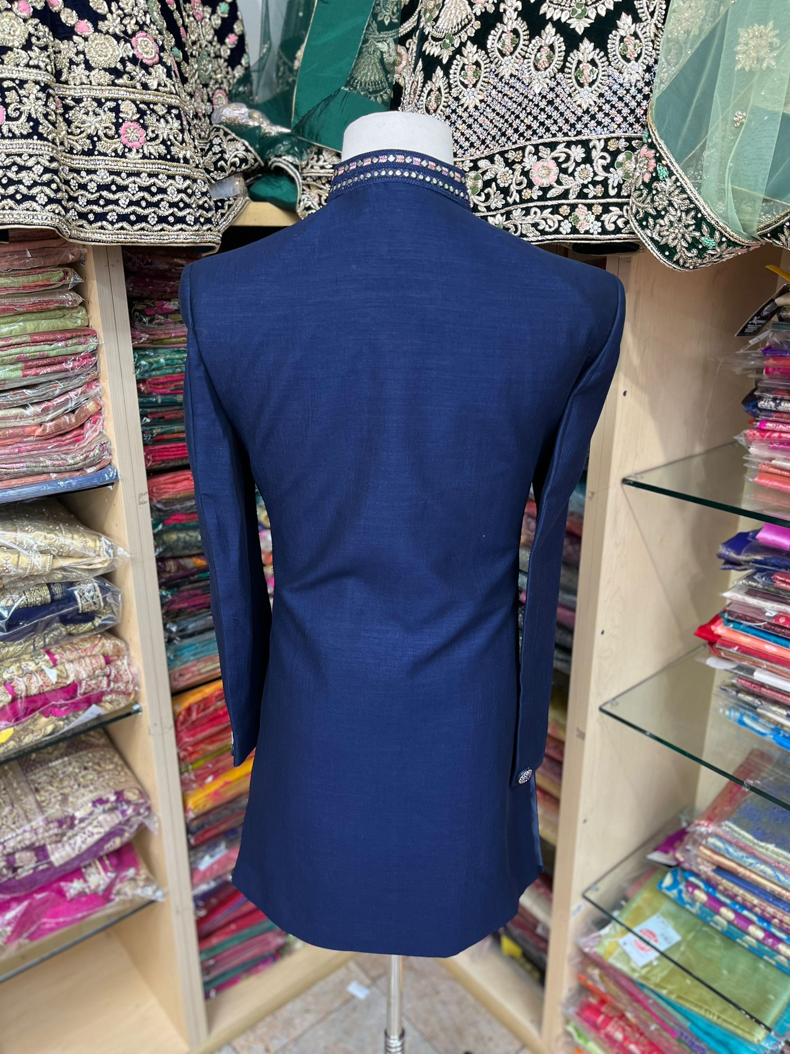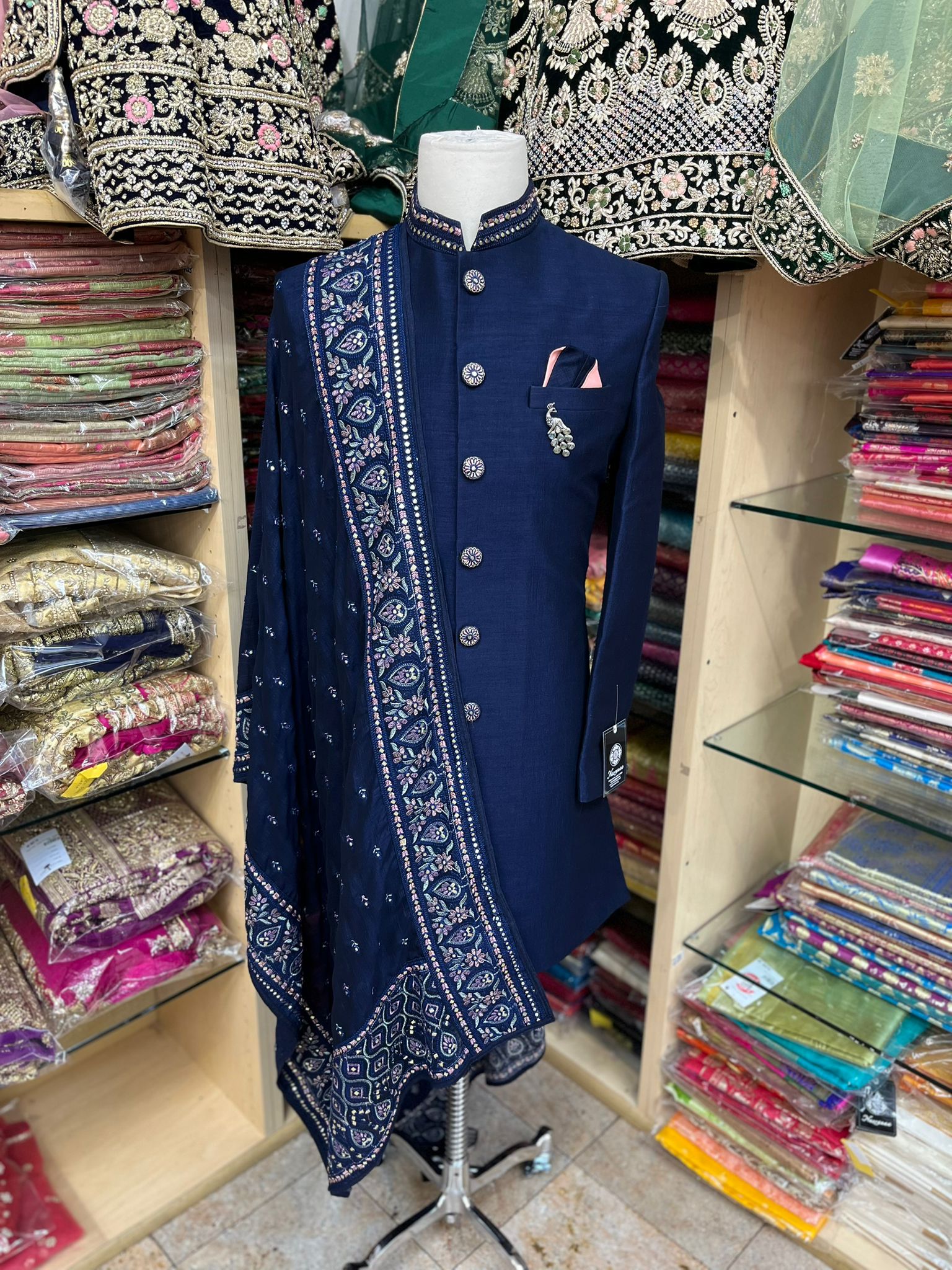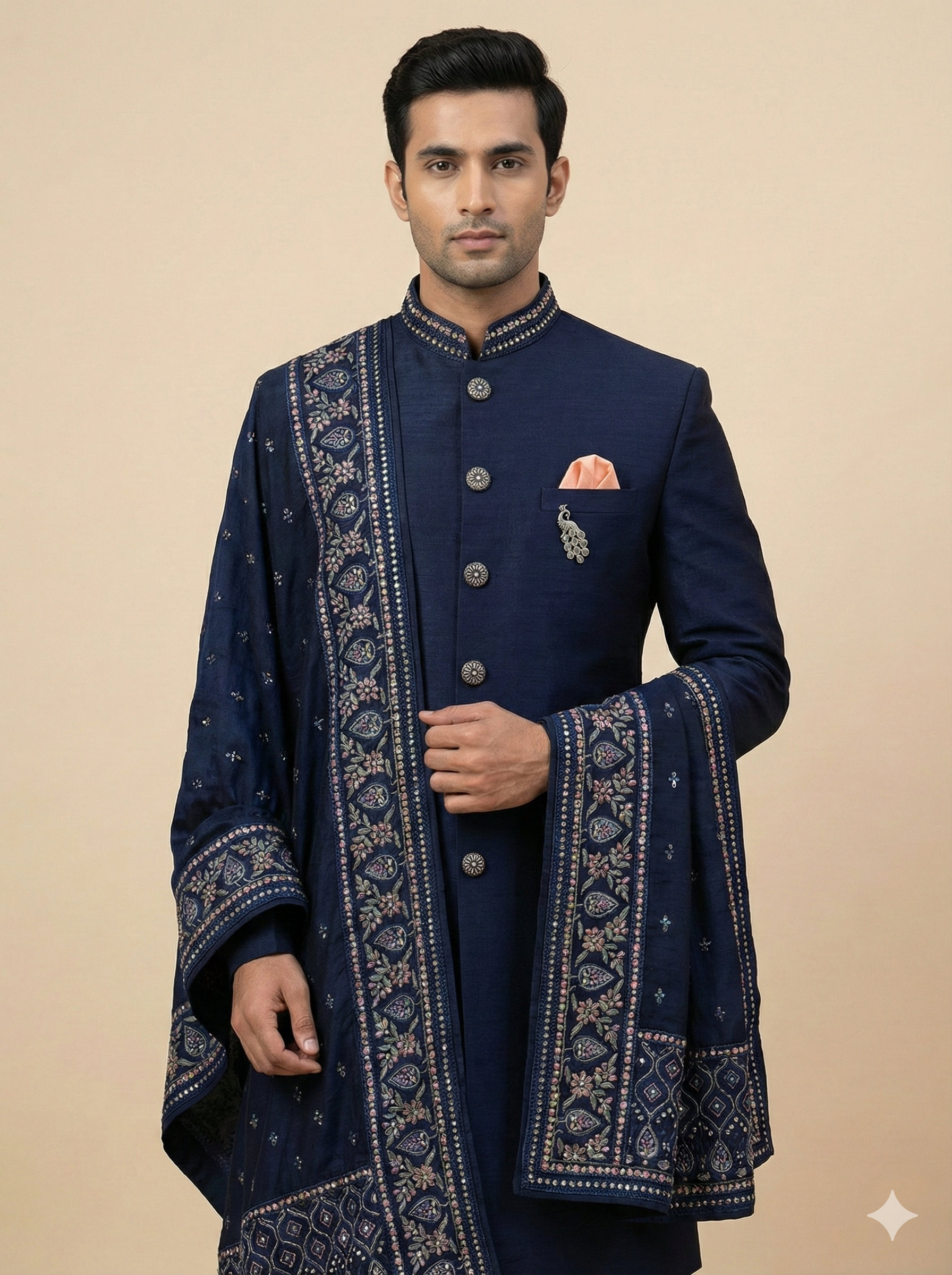 • Introducing our simple yet elegant Navy Blue Sherwani with Thread Dupatta, perfect for any formal occasion. Made from high-quality materials, this sherwani features a sleek and classic design in a stunning navy blue color. It comes with a matching thread dupatta, adding a touch of sophistication to the overall look. Order now.