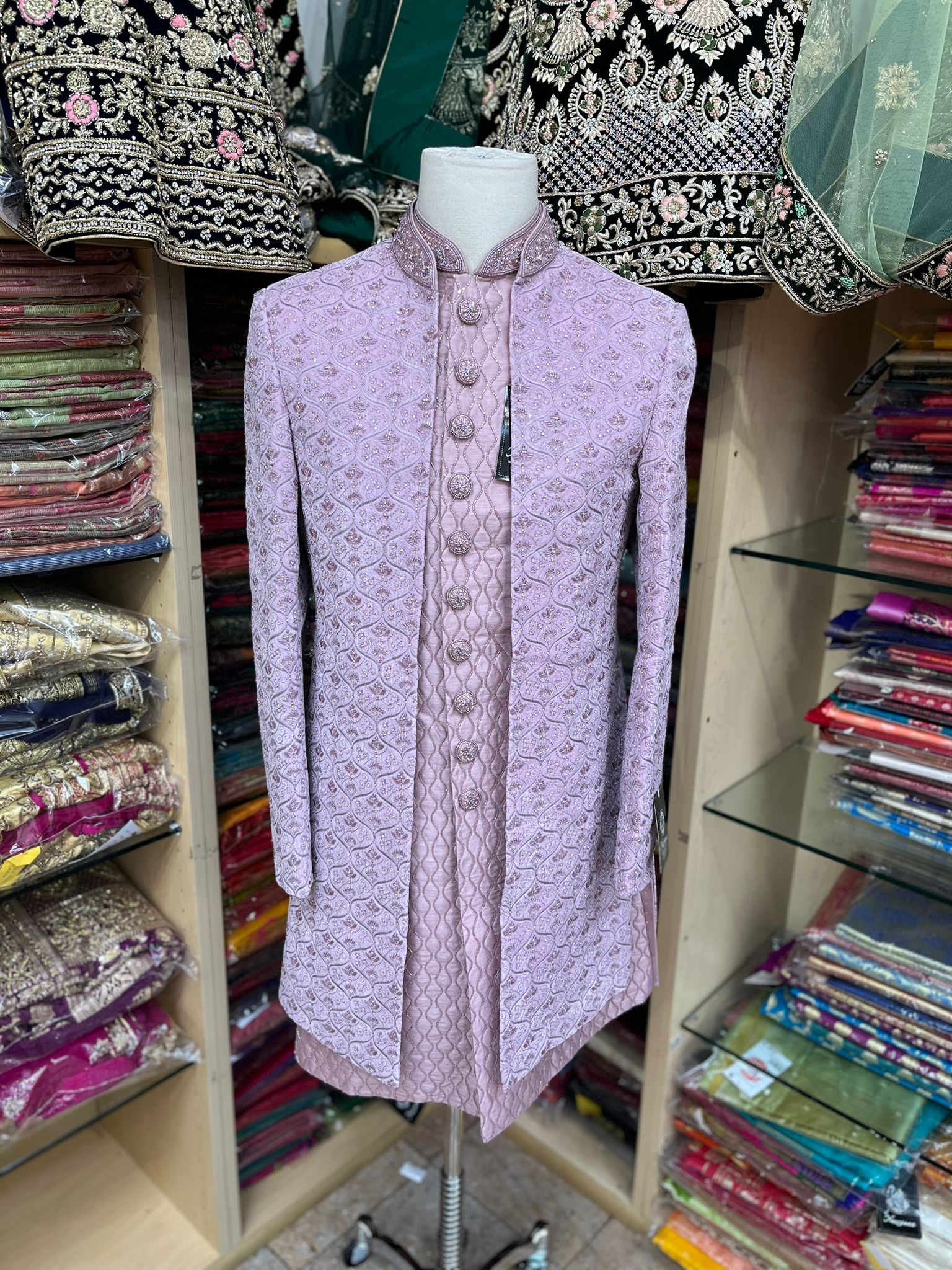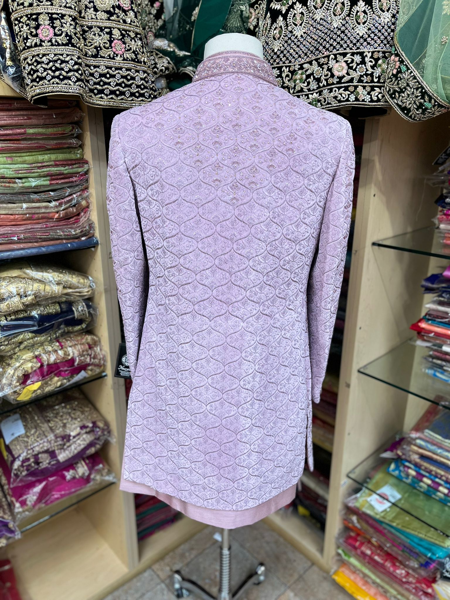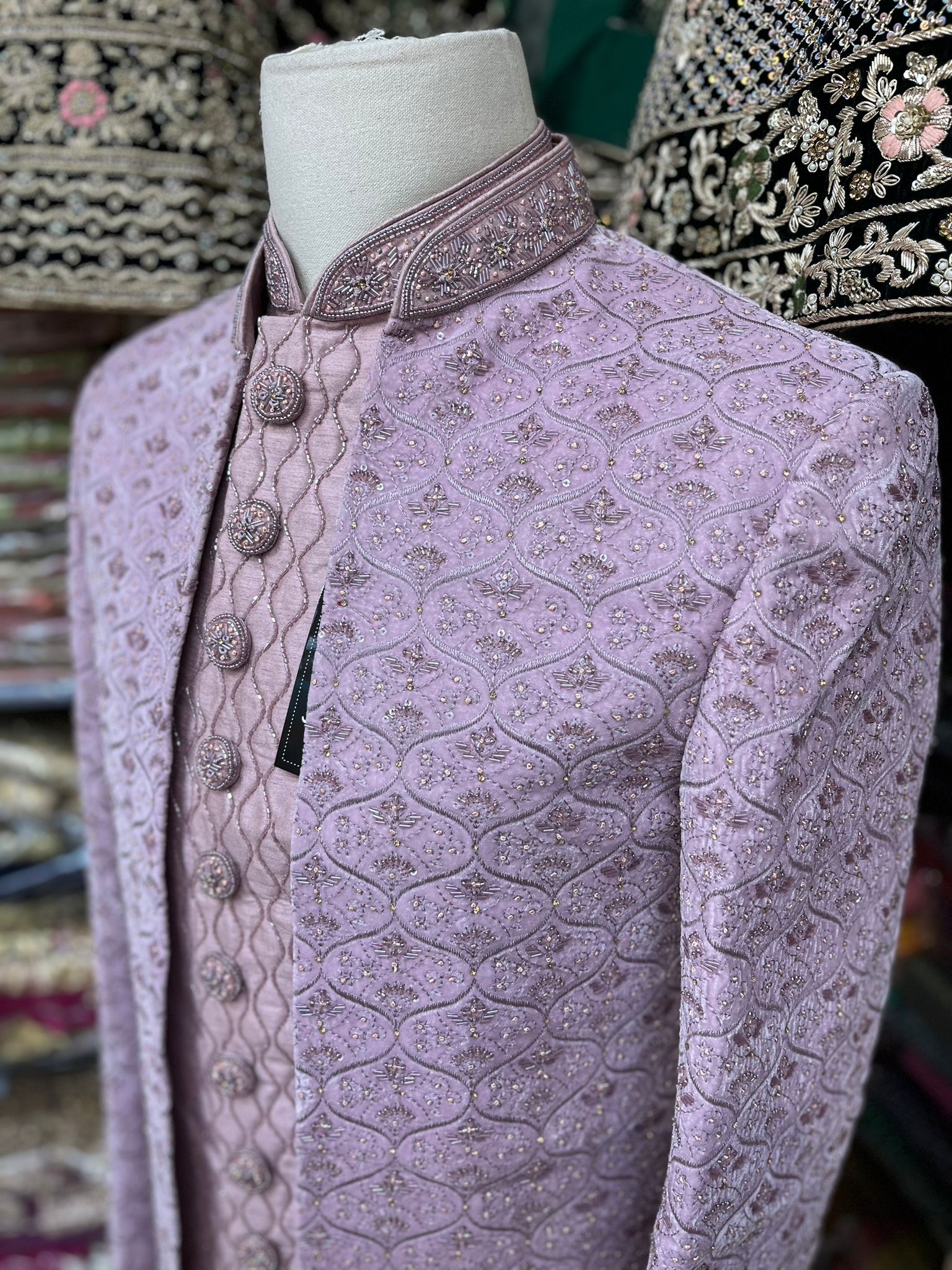 • Introducing our Lavender Velvet Open Jacket Sherwani, a luxurious and stylish twist on a traditional Indian garment. Made from high-quality velvet, this sherwani features a contemporary open jacket style and a beautiful lavender color, perfect for any formal occasion. Elevate your fashion game and order now.