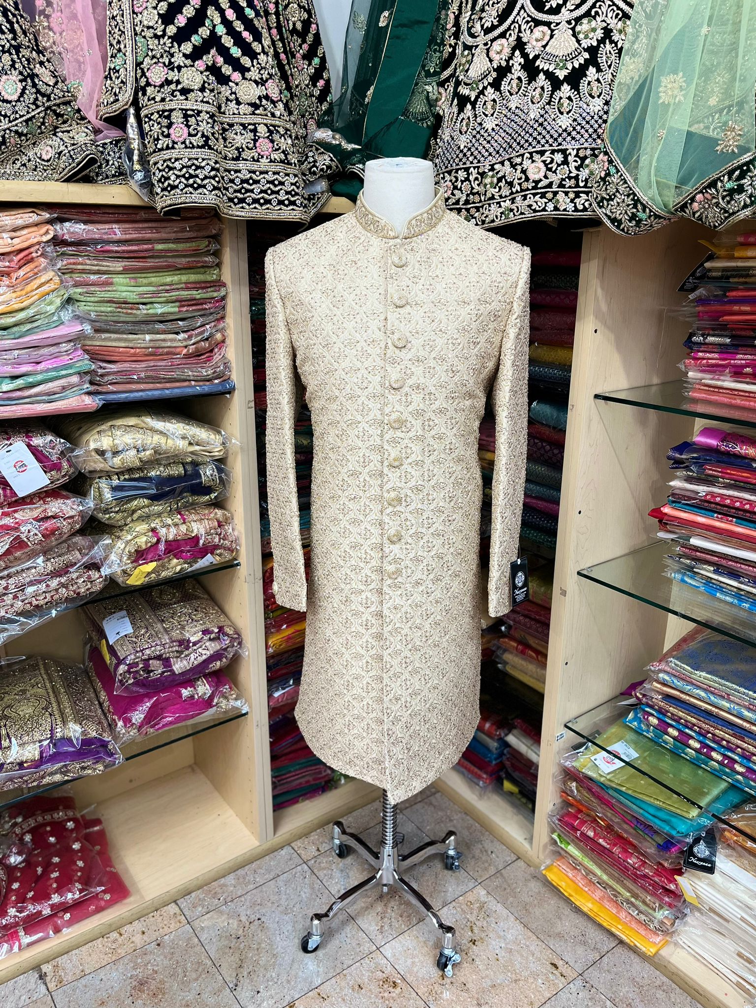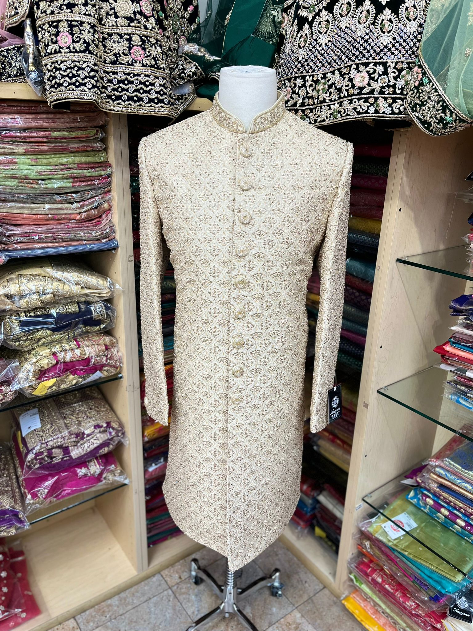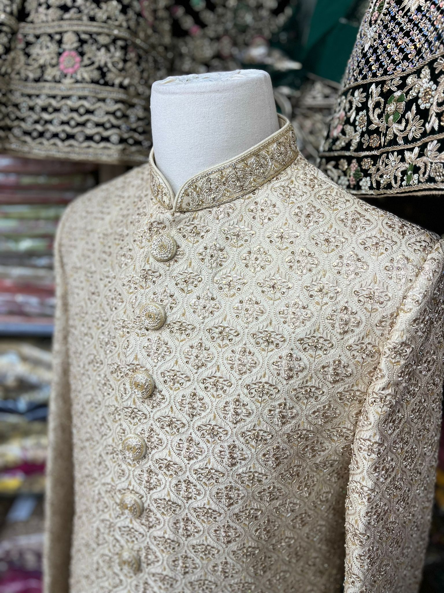 • Introducing our Heavy Embroidery Sherwani in Beige, a luxurious and elegant traditional garment perfect for any special occasion. Featuring intricate and stunning embroidery, this sherwani is made from high-quality materials, ensuring both comfort and style. Elevate your fashion game with this exquisite beige sherwani, order now.