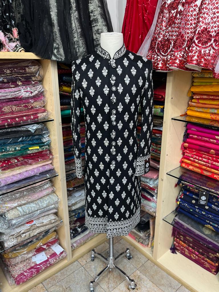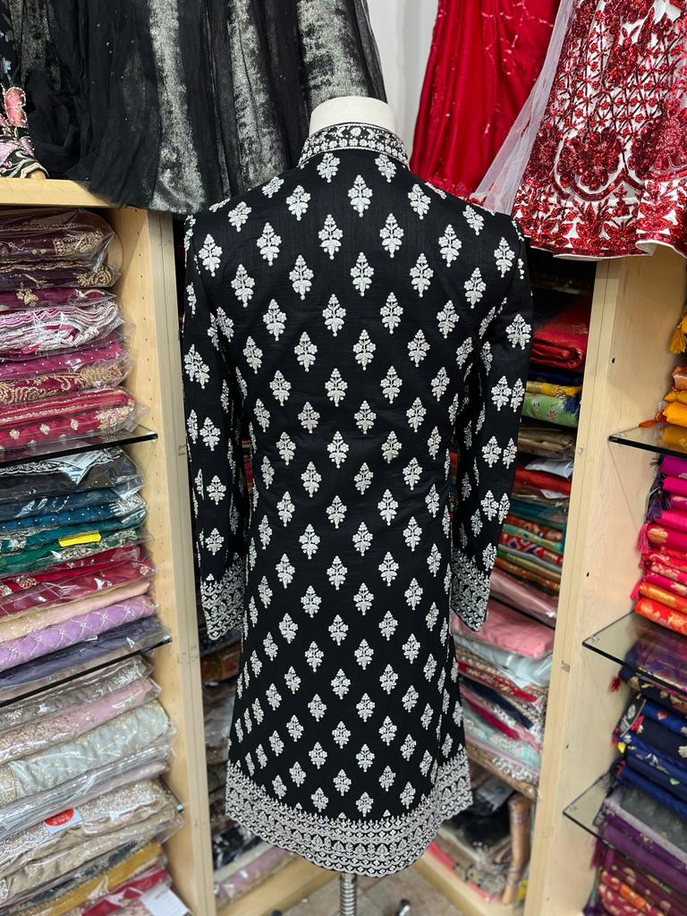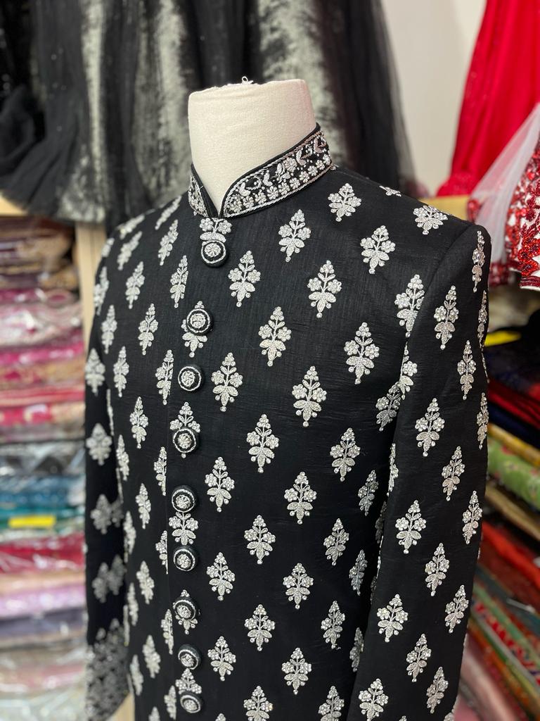 Black Sherwani with silver embroidery