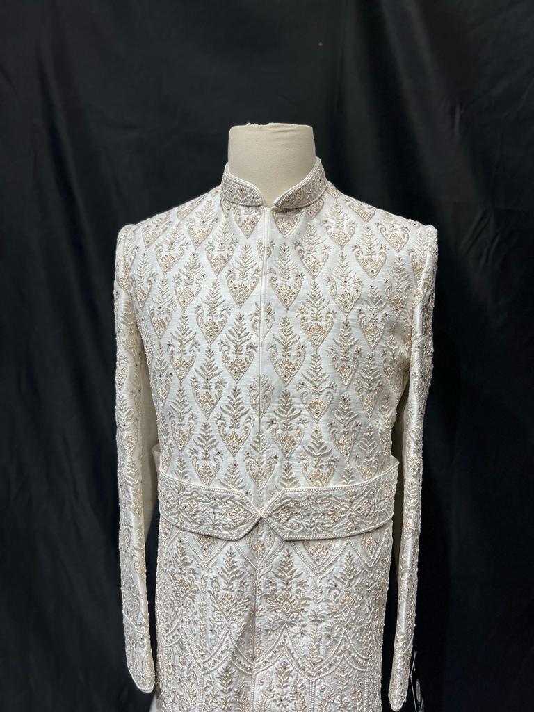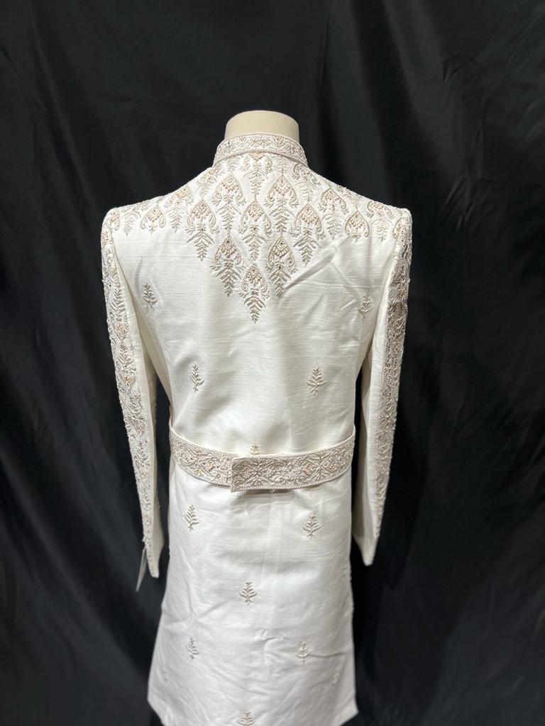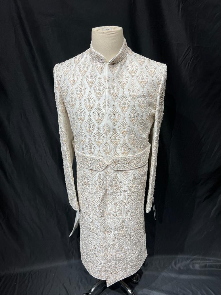 This U2-S166 sherwani from Mens is crafted with intricate thread work for a detailed texture and a luxurious appearance. Perfect for formal occasions, this sherwani will make a timeless addition to your wardrobe.