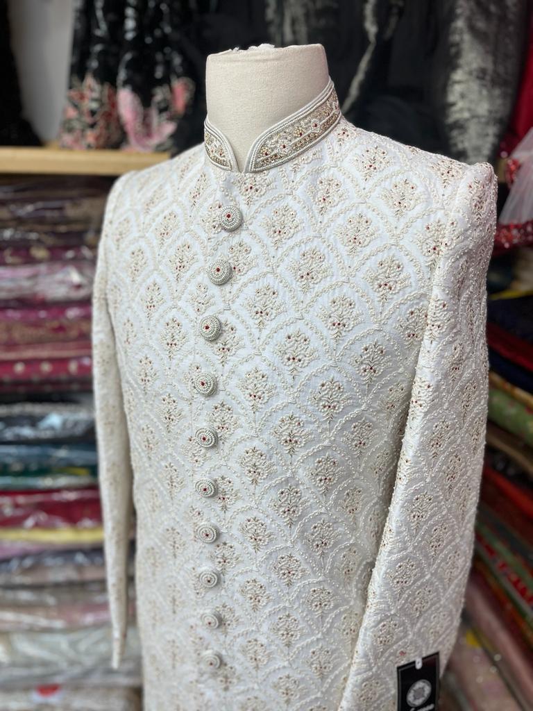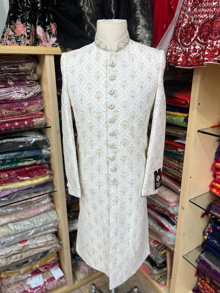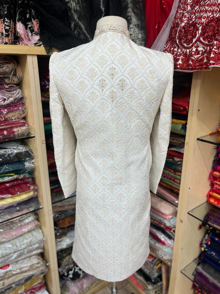 This Mens Sherwani V20-S10 is made with high-quality fabrics and craftsmanship for a luxurious fit. It features intricate detailing and classic styling for a timeless and sophisticated look. It's the perfect choice for your next special occasion.