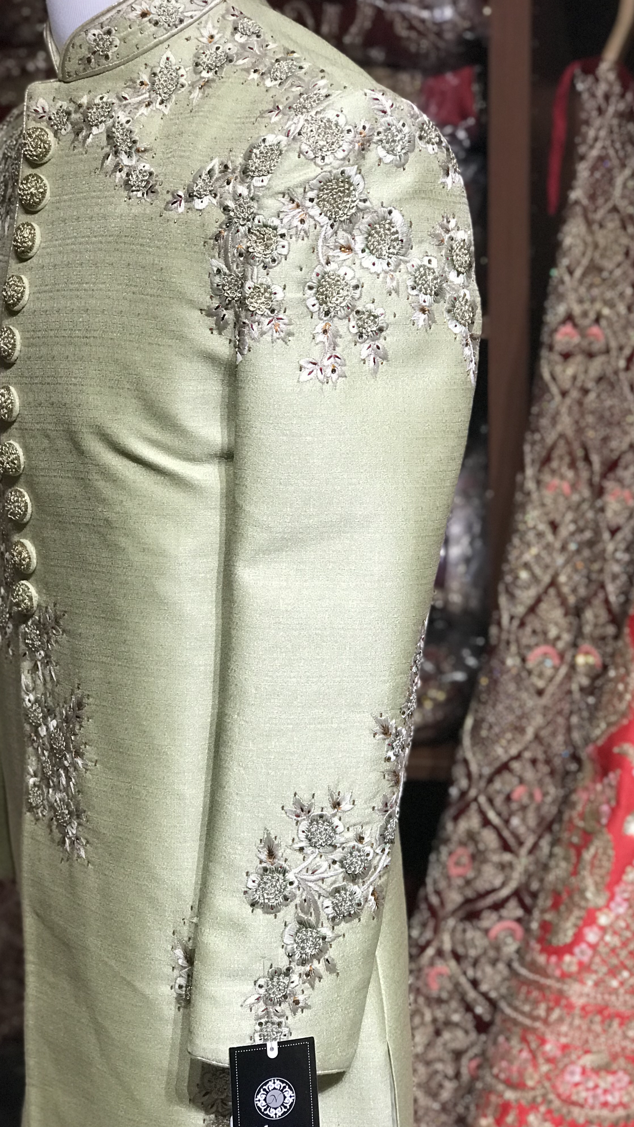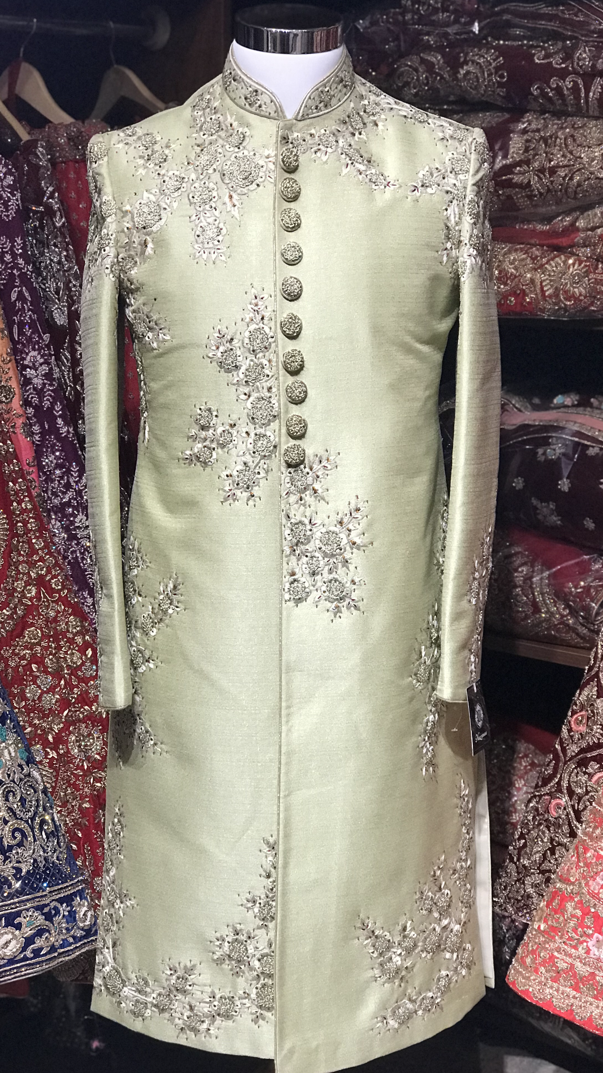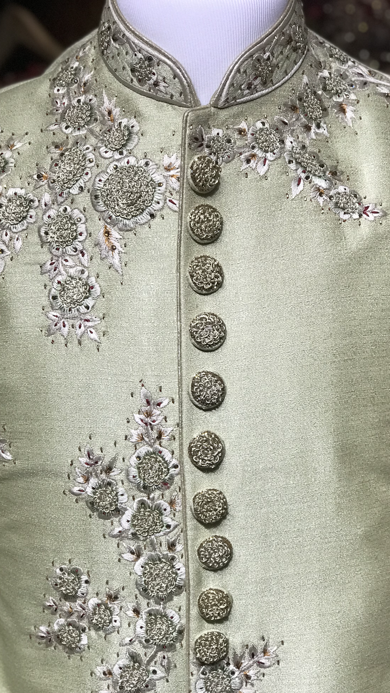 Sage Floral Embroidery Sherwani