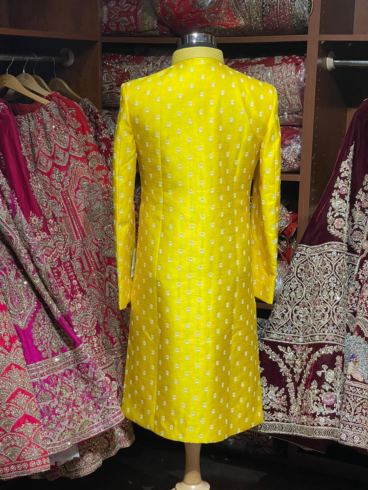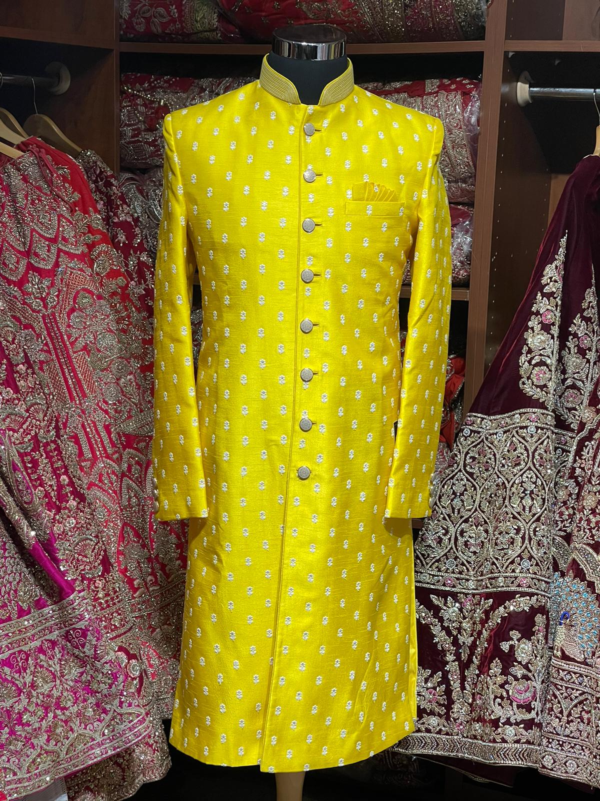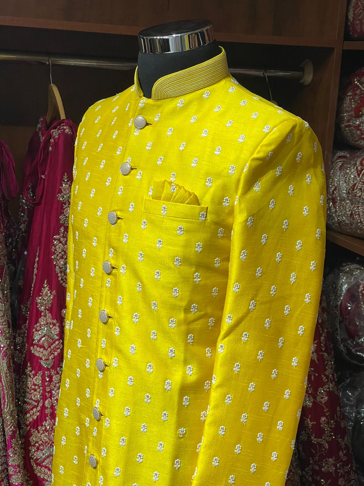 Mustard Yellow Thread Embroidered Sherwani- M1033