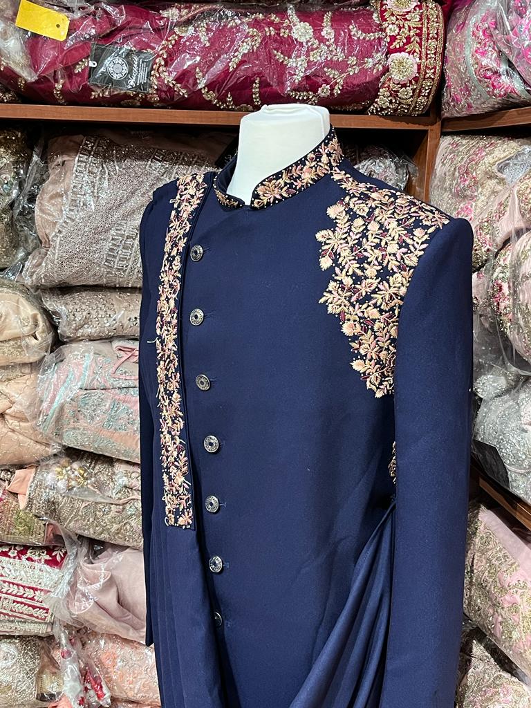 Navy Blue Embroidered Sherwani- R14-N61