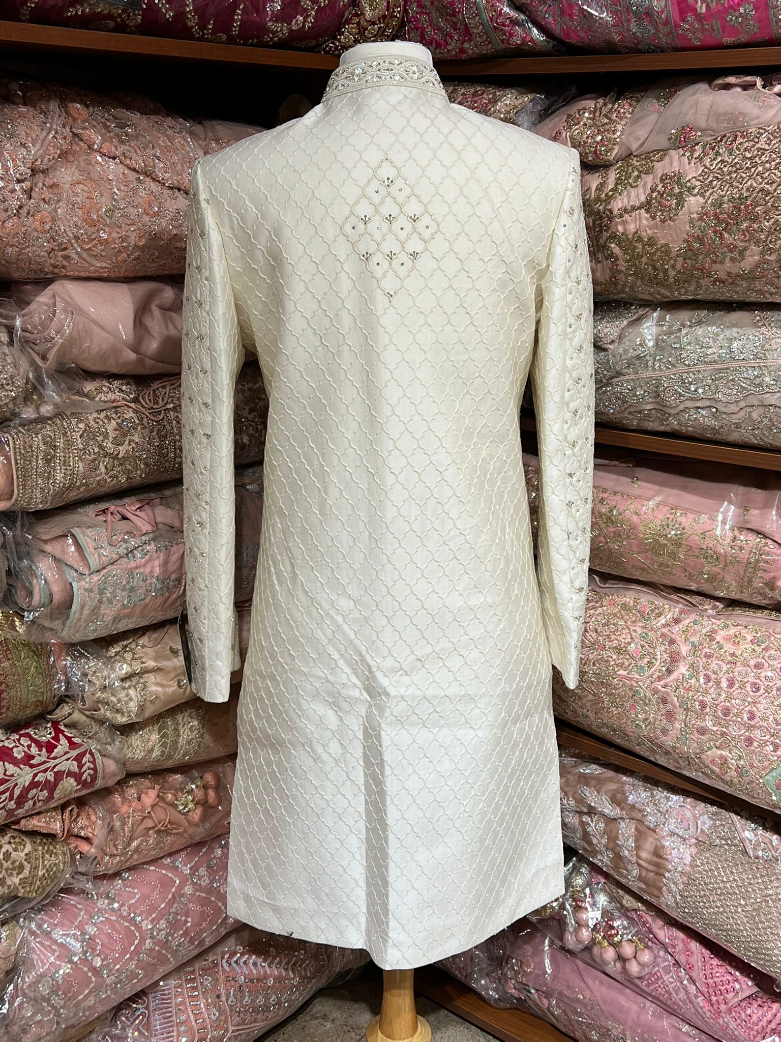 Pearl White Stone Embroidered Sherwani- R14-N90