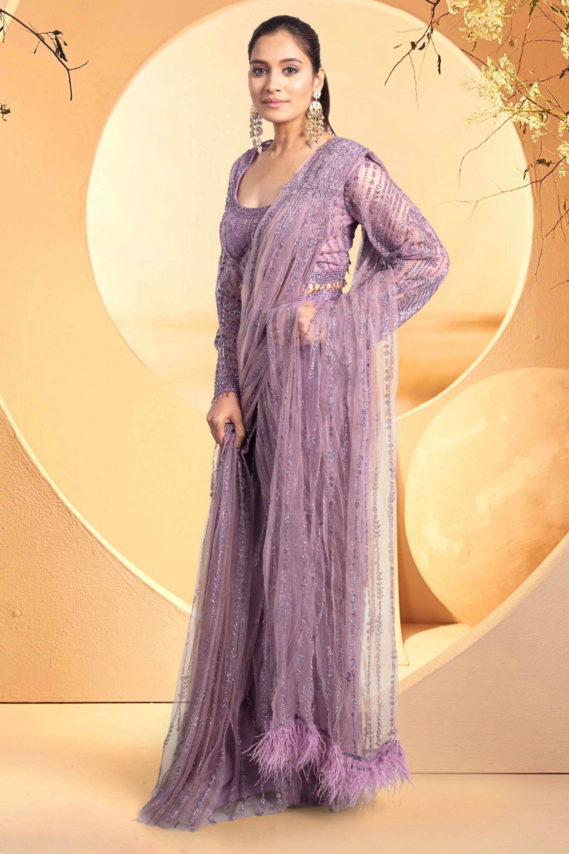 Get ready to rock your next party or wedding event with our Pre-Stitched Saree. Featuring a stunning stone embroidery paired with full sleeve blouse, this saree is perfect for any bride looking to make a statement at their cocktail or reception. Don't settle for a basic saree, stand out and turn heads with this jaw-dropping piece.