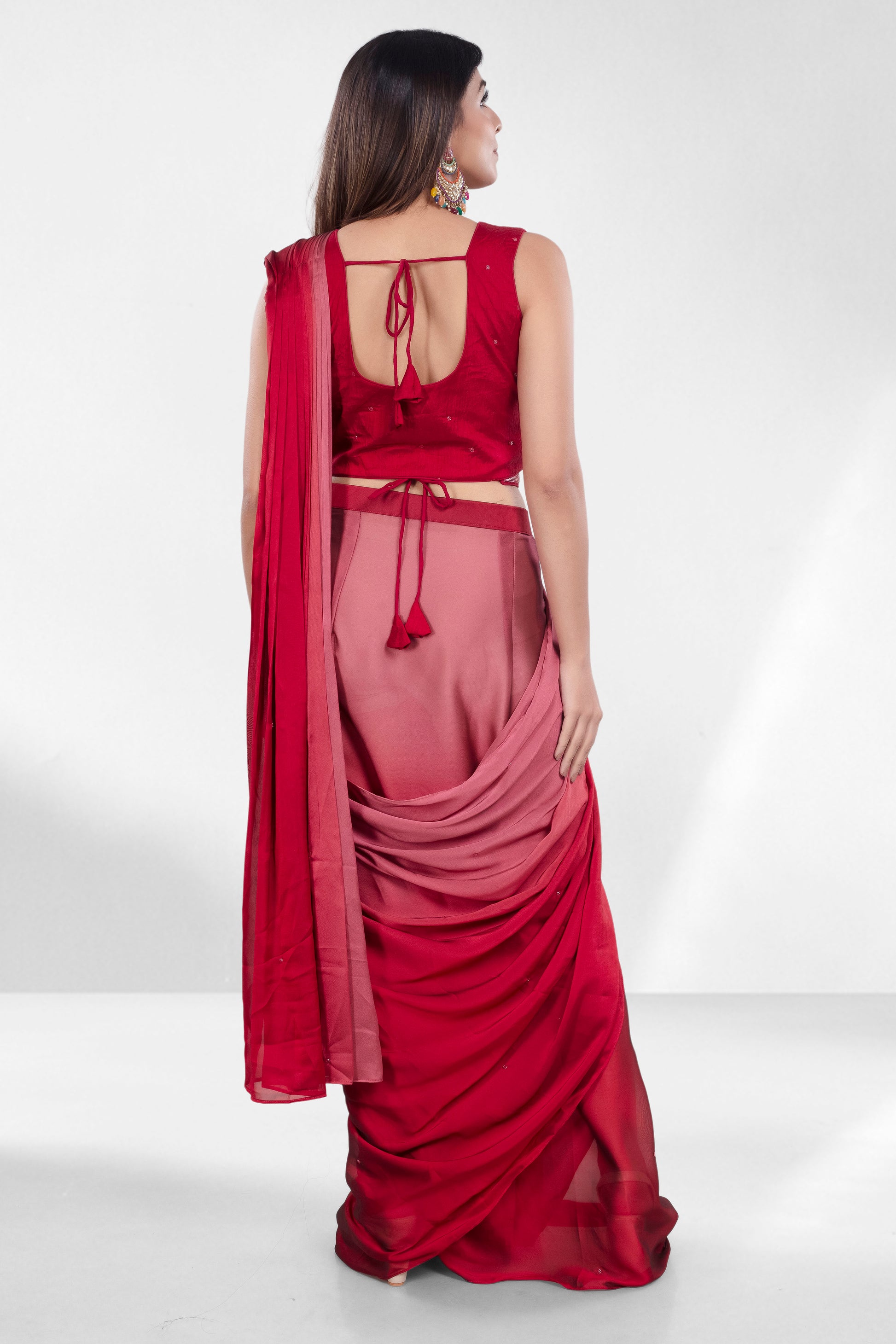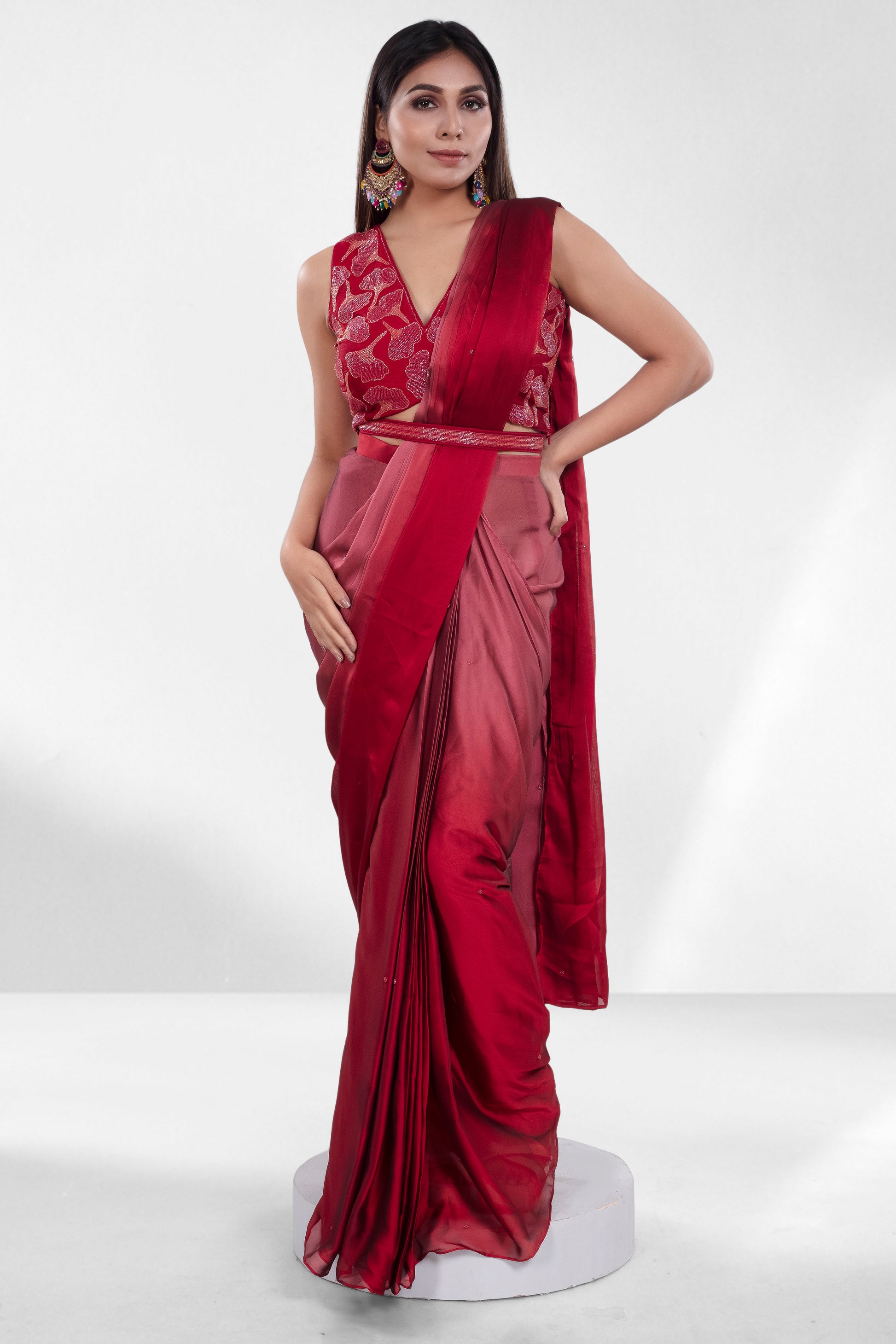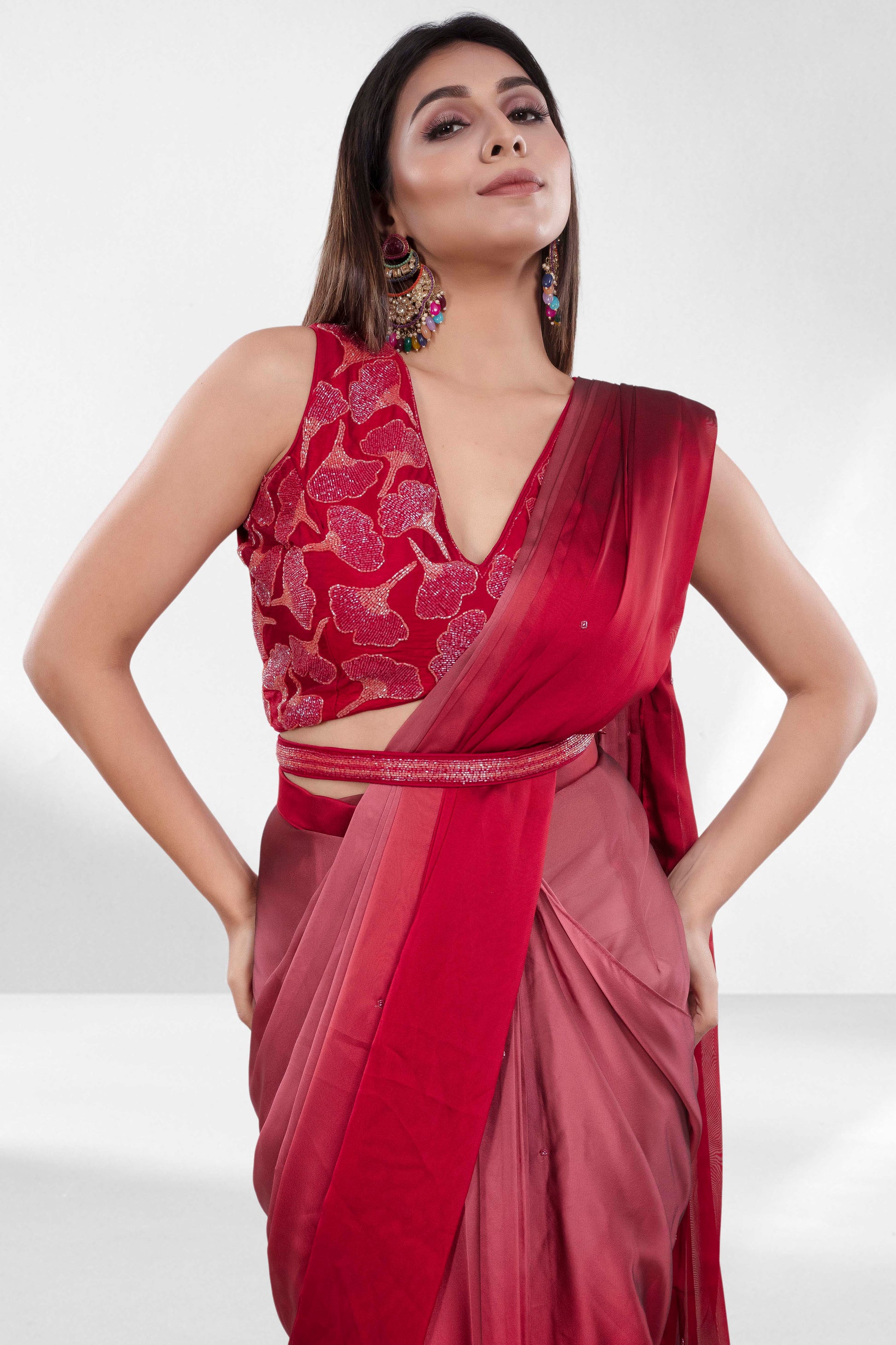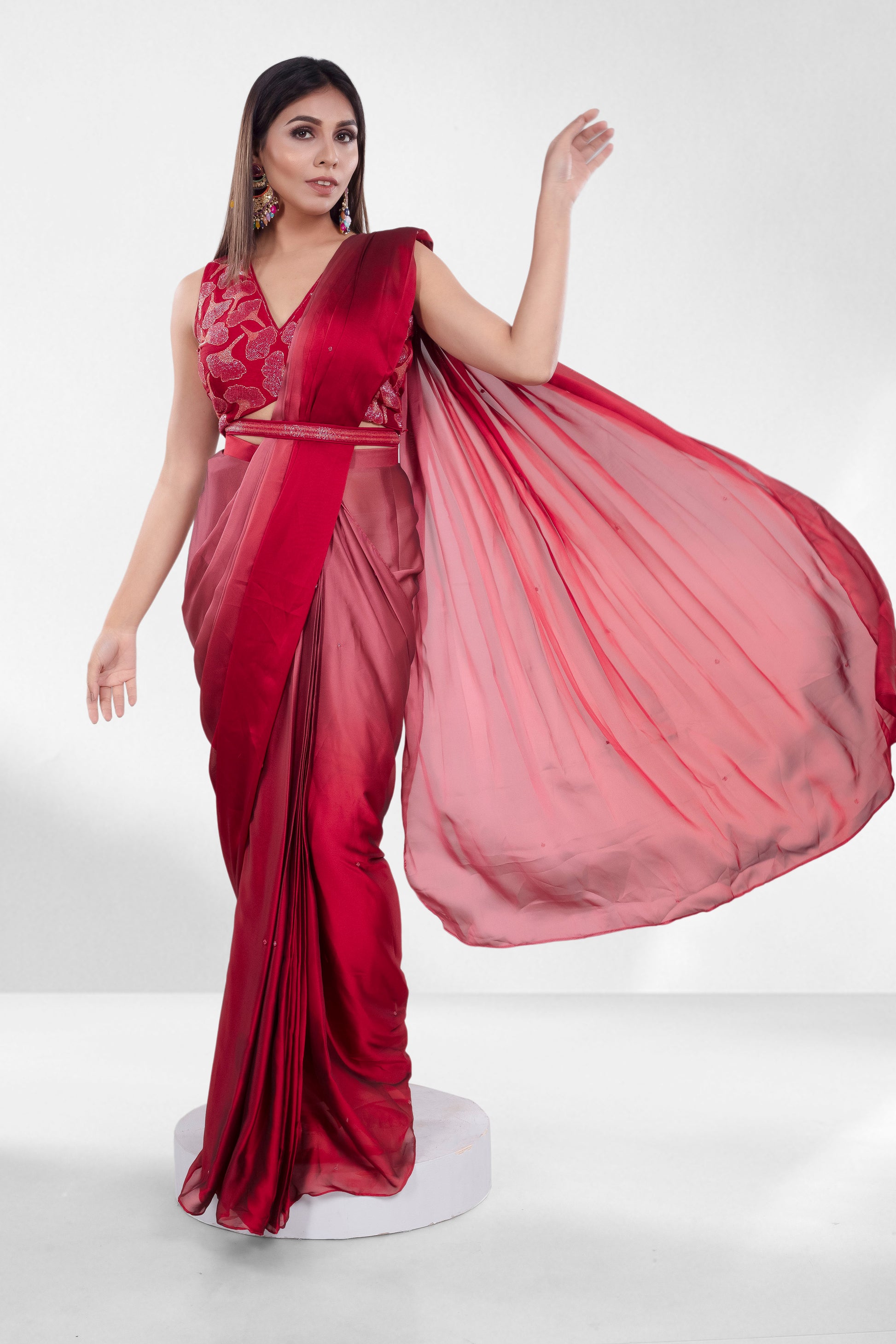 Experience the convenience and elegance of our Pre-Stitched Saree W/ Readymade Blouse - D088. Featuring intricate cutdana floral embroidery on the blouse, this saree is perfect for any occasion. Save time and look effortlessly beautiful with this pre-stitched saree.