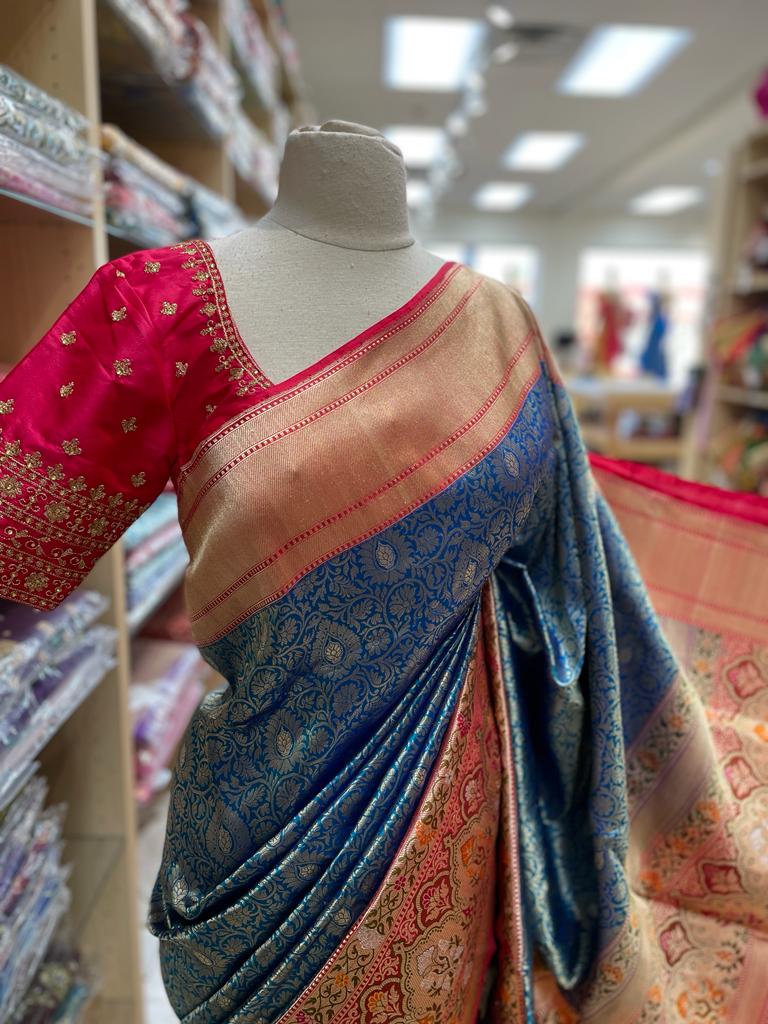 Drape yourself in the timeless beauty of our Pure Banarasi Sarees NB-010. Expertly crafted from the finest silk, these exquisite sarees are perfect for formal and casual occasions alike. Their intricate motifs make for a sophisticated and luxurious evening look.