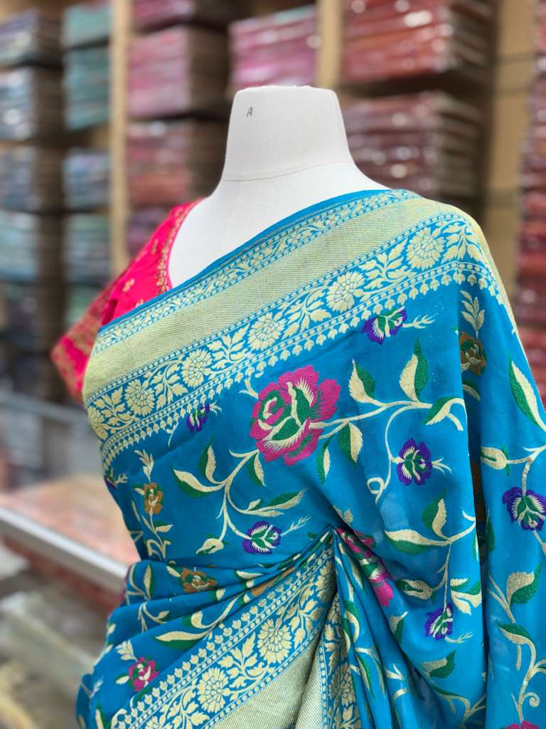 This Pure Mysore Silk Georgette Saree represents the pinnacle of traditional elegance, crafted from India's most coveted silk. The georgette weave creates an ethereal drape that flows effortlessly, while the silk's natural luminosity catches light with understated brilliance. Lightweight yet substantial, this saree offers comfort without compromise, perfect for celebrations and formal occasions. The 66-count construction ensures durability and longevity, making it a cherished heirloom piece. Experience the refined luxury of authentic Mysore silk—a fabric that honors heritage while transcending time.
