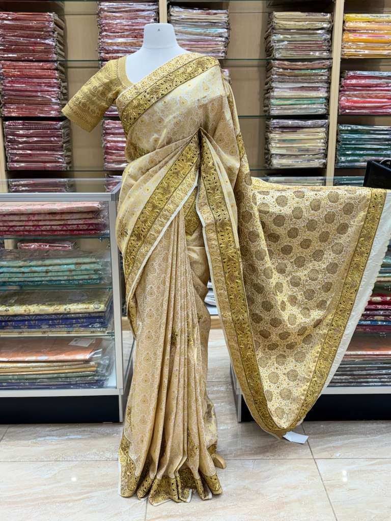 Pure Silk Kanchipuram Embroidery Saree-NK 69 combines timeless elegance with exquisite craftsmanship. Woven from premium silk, this saree features intricate embroidery work that showcases traditional artistry. The rich texture and lustrous finish create a striking presence, making it ideal for weddings, celebrations, and formal occasions. The sophisticated drape and refined detailing reflect the heritage of Kanchipuram weaving, offering a statement piece that honors classic Indian textile traditions while maintaining contemporary appeal.