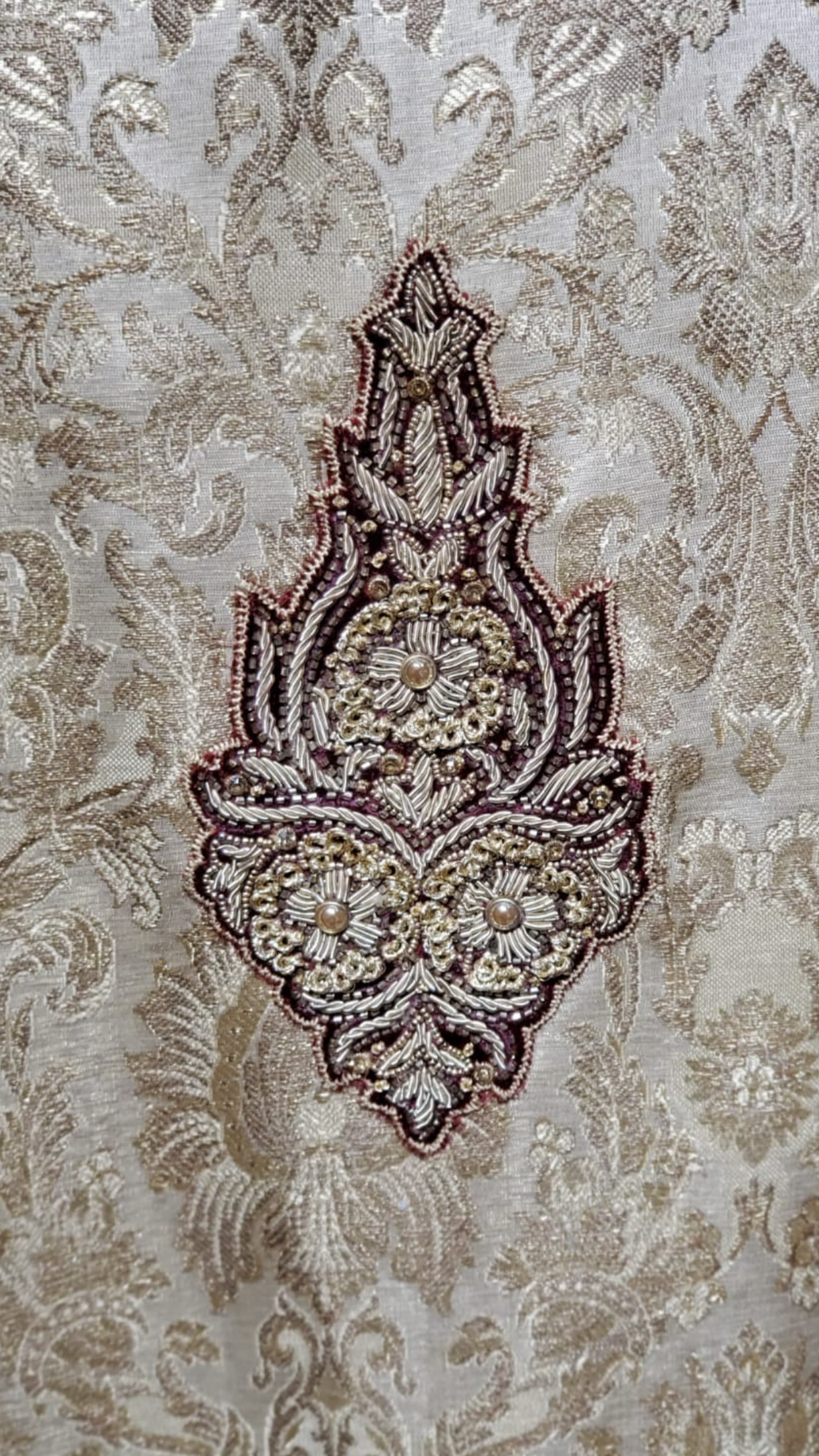 Gold double layer sherwani with cutdana, zardosi & stone work!