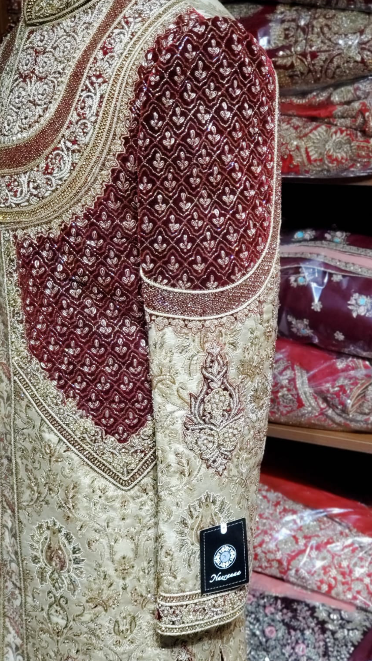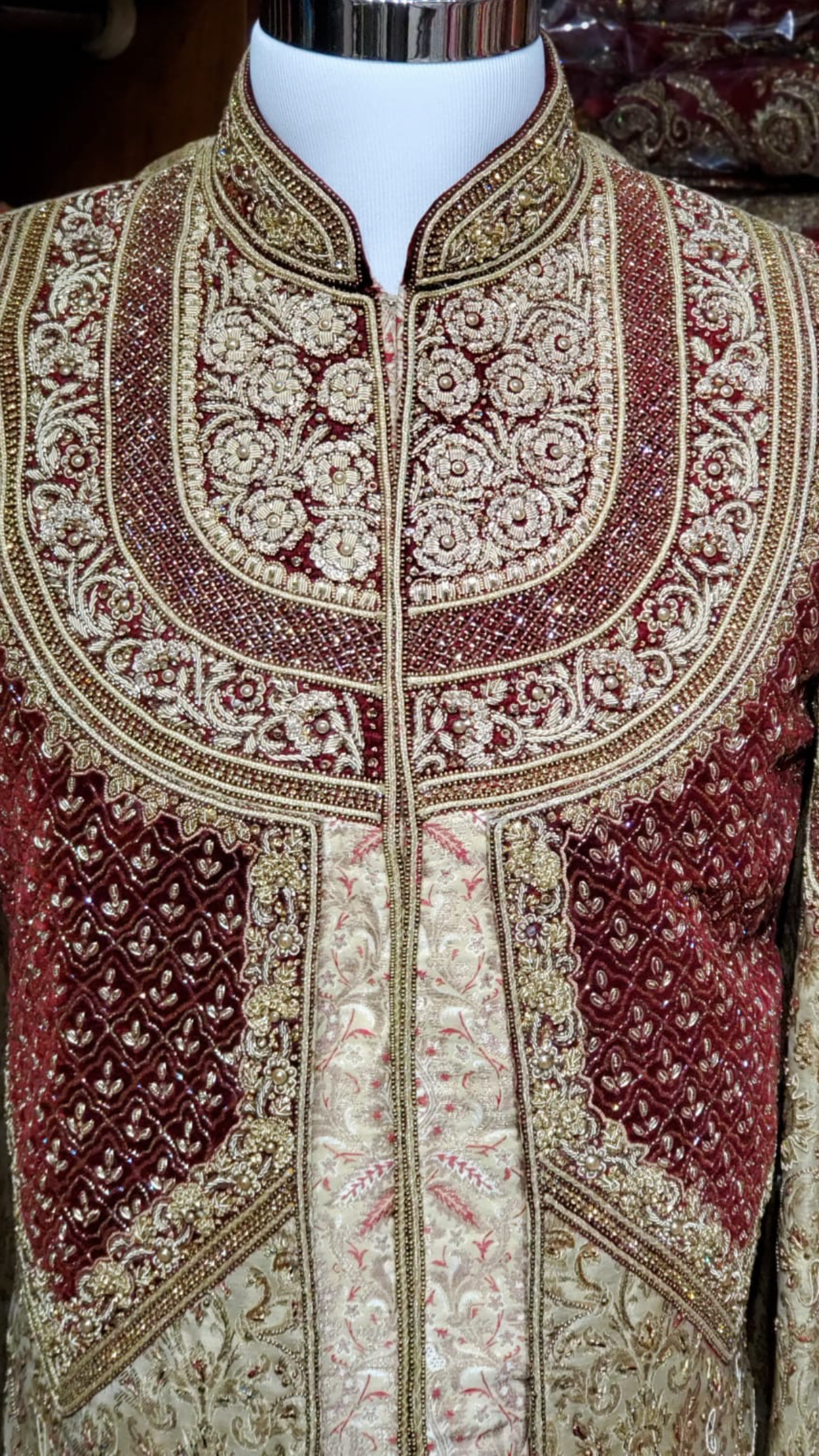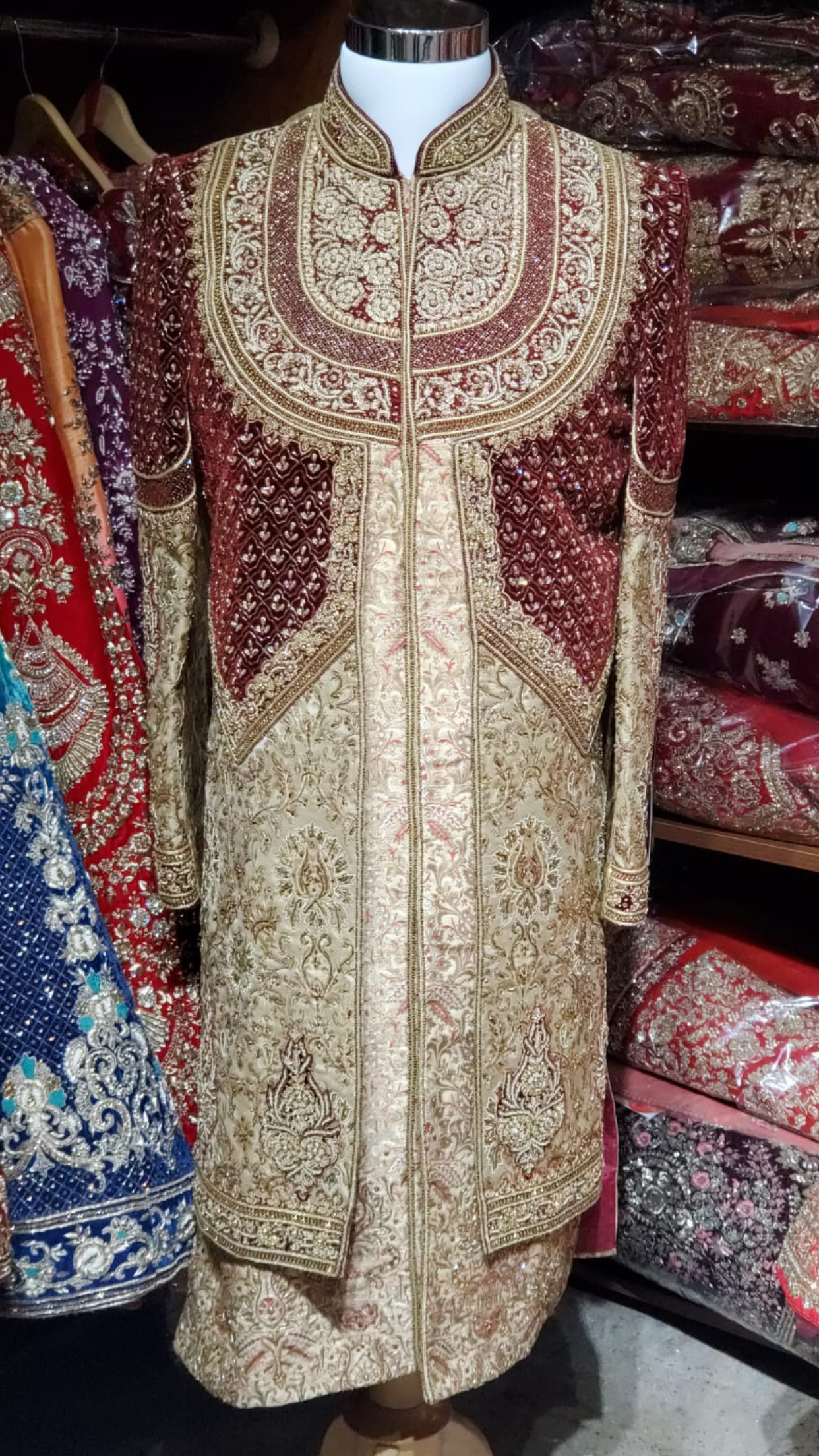 Gold Maroon Groom's Sherwani