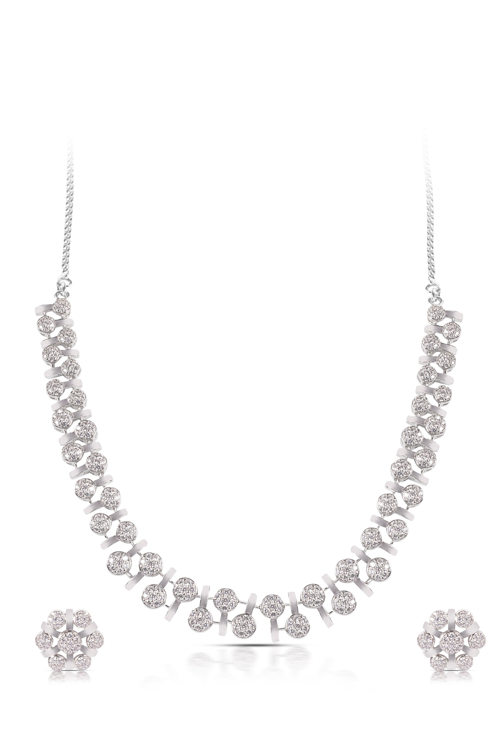 Silver Round Diamond Cluster Necklace Set is a perfect accessory for any night event. It is sure to make you stand out in a crowded room.