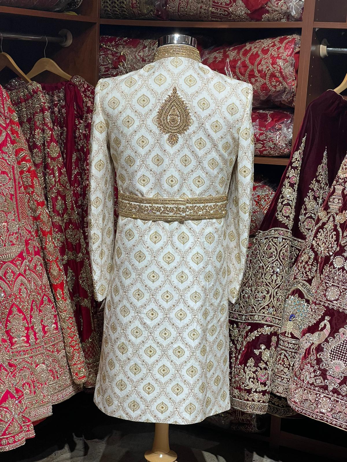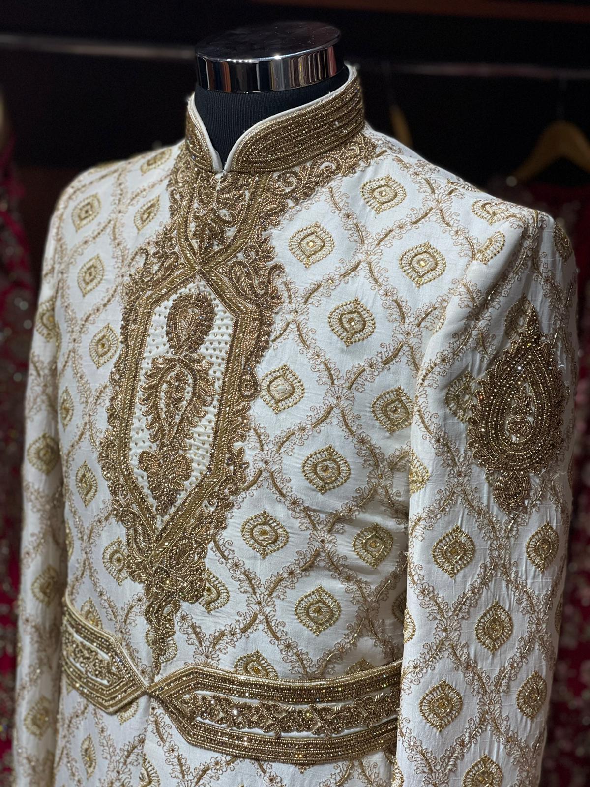 Off White Zardozi Embroidered Sherwani -6209
