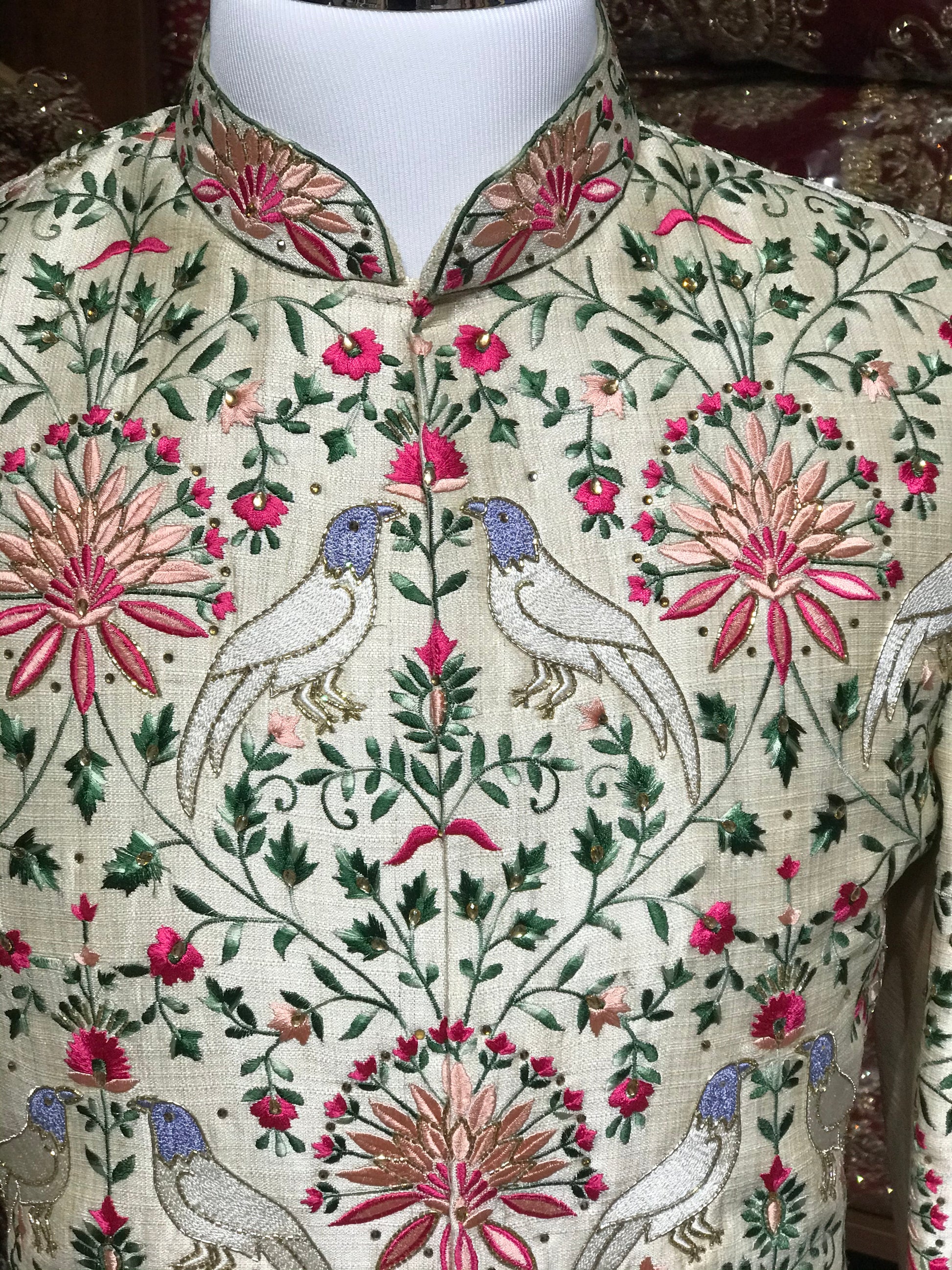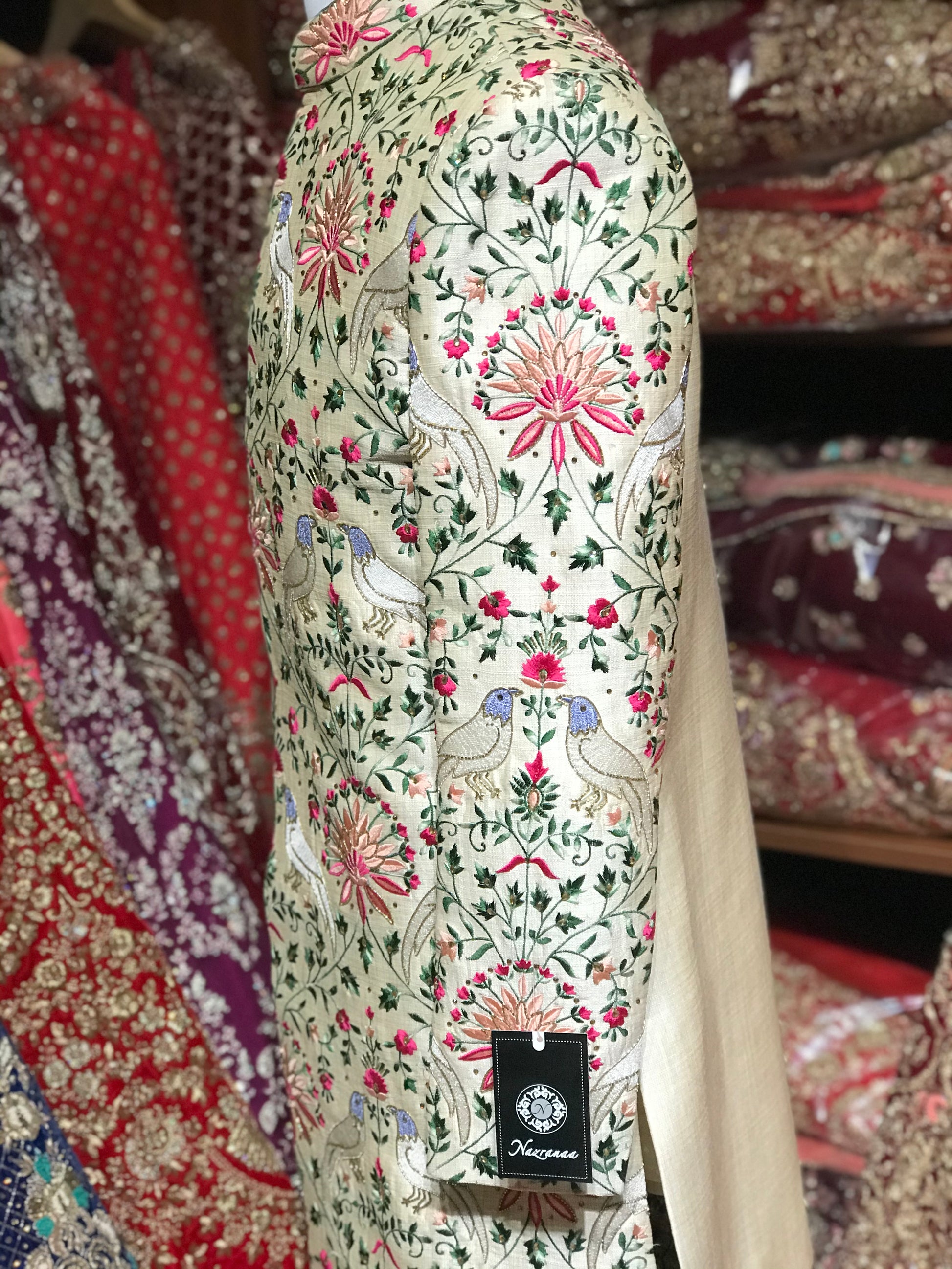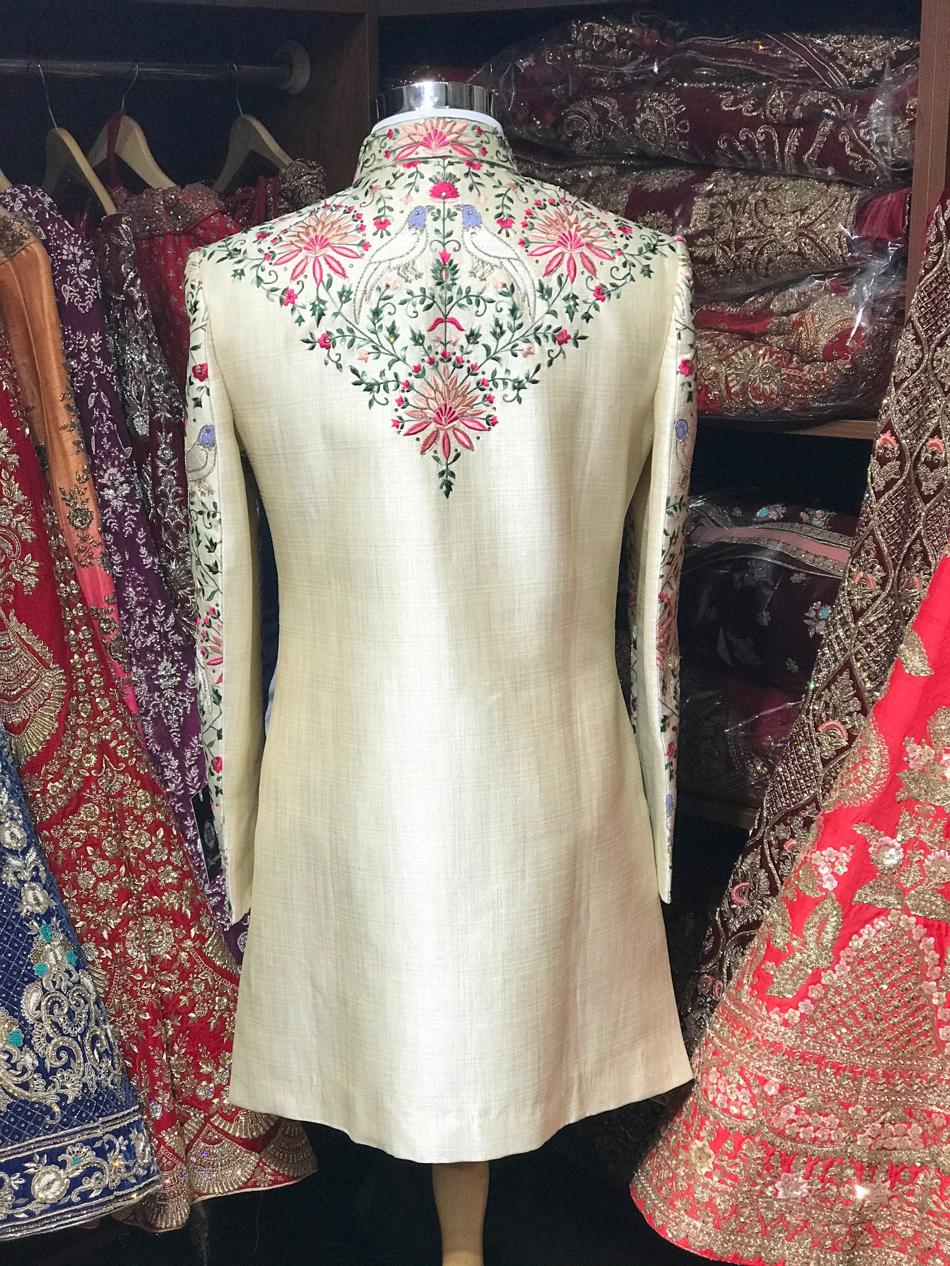Cream Multi-Color Sherwani